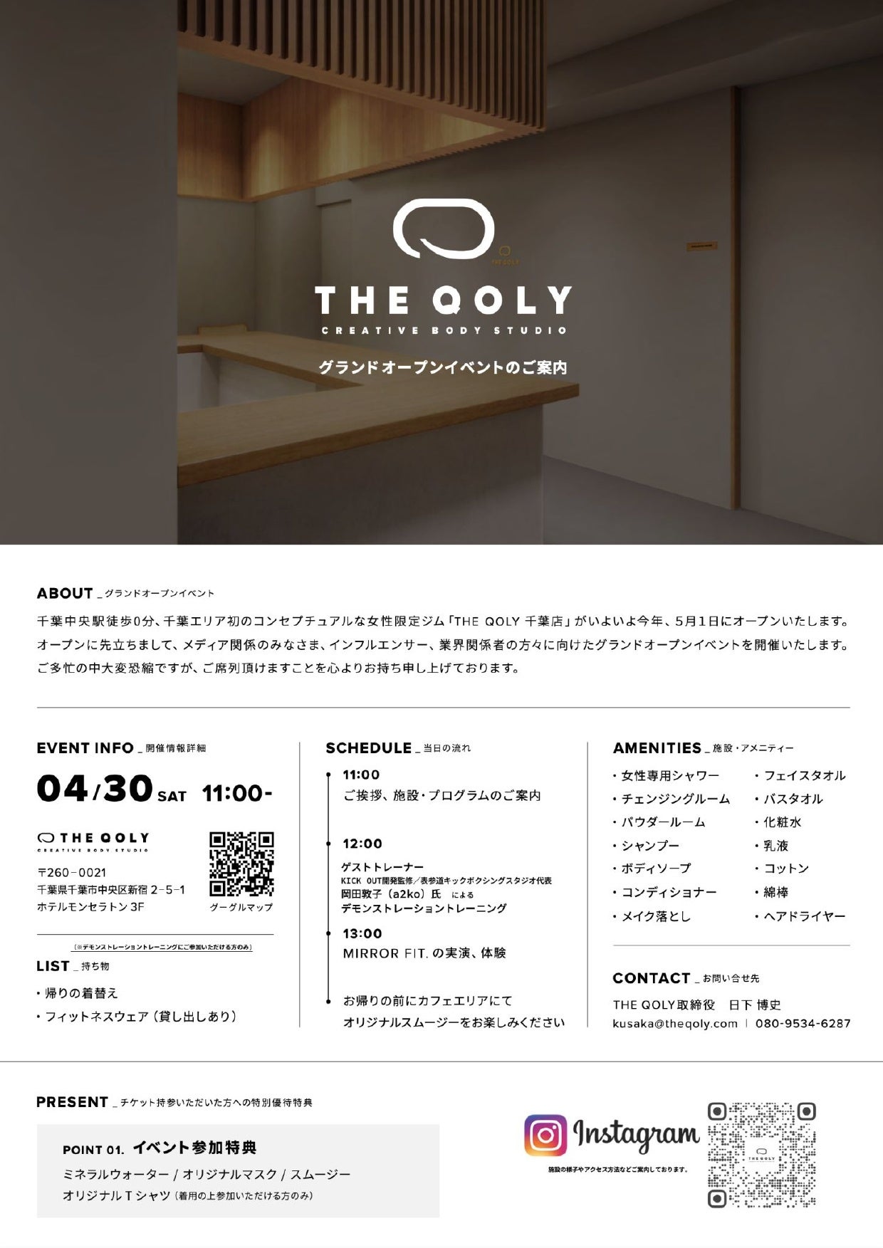 【千葉県初】コンセプチュアルなクリエイティブボディスタジオ「THE QOLY 千葉店」OPEN!ハイエンドな内装とヘルステックでフィットネスを日常に。あなたのQOL向上をお手伝いします。