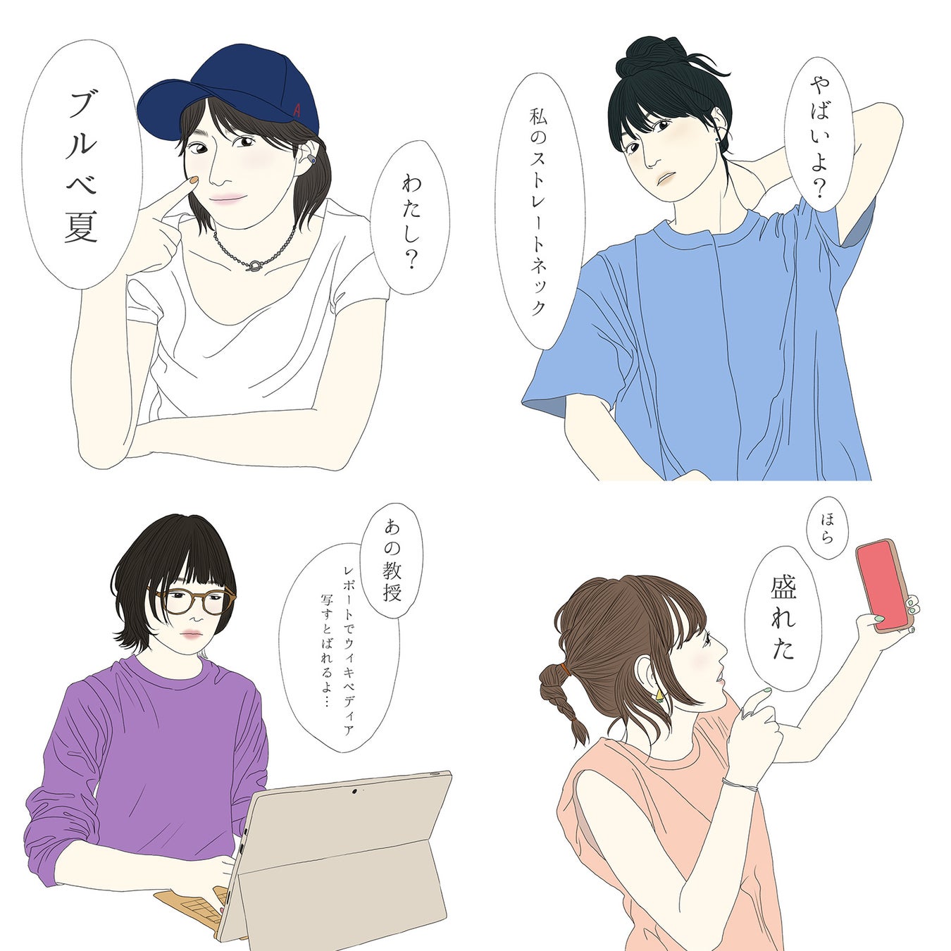 “女子トーク”をイメージしたセリフを添えた作品となっている。