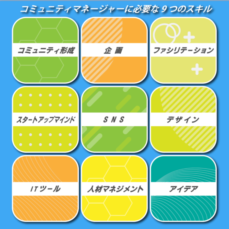 「SUPER SCHOOL」では、コミュニティマネージャーに必要なスキルを9つ定義し、約3か月間でそれらのスキルの修得を目指す内容となっています。