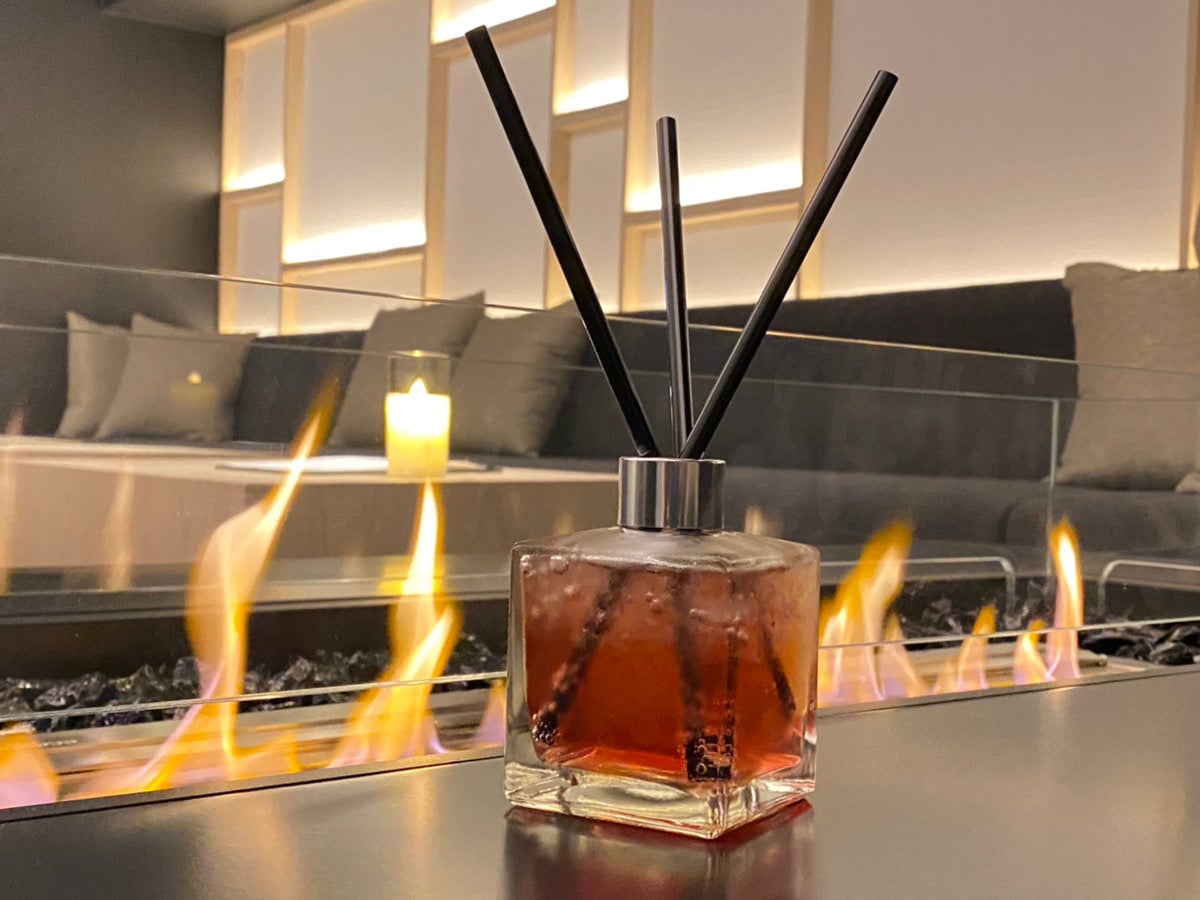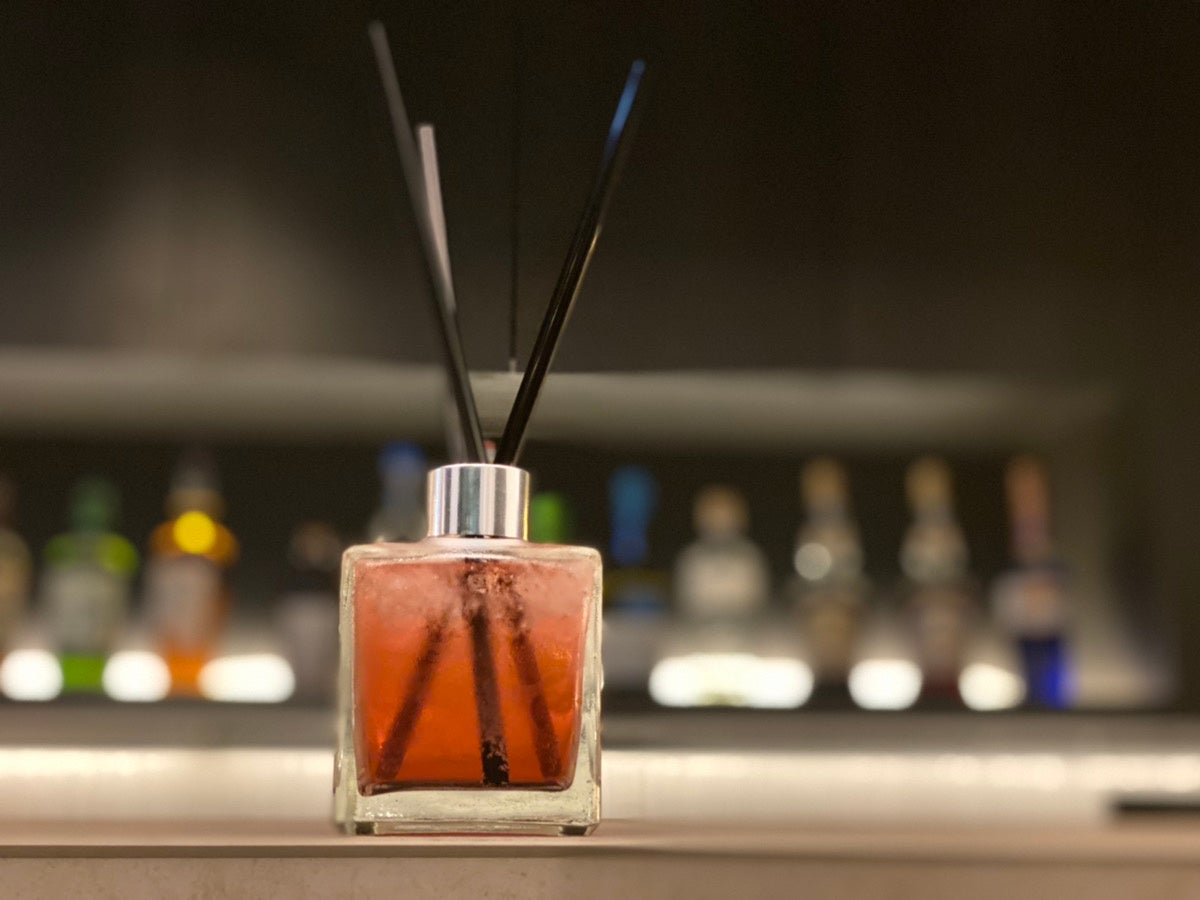 ディフューザーデザインのオリジナルドリンク「The Boutique(ザ・ブティック)」を提供いたします。シーシャは香りを呼吸で楽しむもの。そこから着想を得た、このドリンクのコンセプトは " 香りを飲む "。バラの芳醇な香りとザクロのほのかな甘味が合わさったオリジナルモクテルです。五感の全てを使ってお楽しみください。