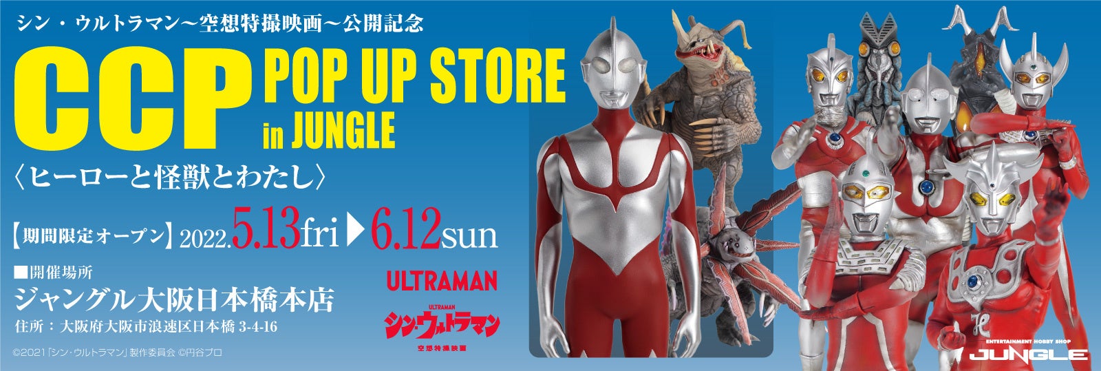 シン・ウルトラマン 空想特撮映画公開に合わせたイベント「CCP POPUP STORE in JUNGLE~ヒーローと怪獣とわたし~」ジャングル大阪日本橋本店1階にて6月12日(日)まで開催中。