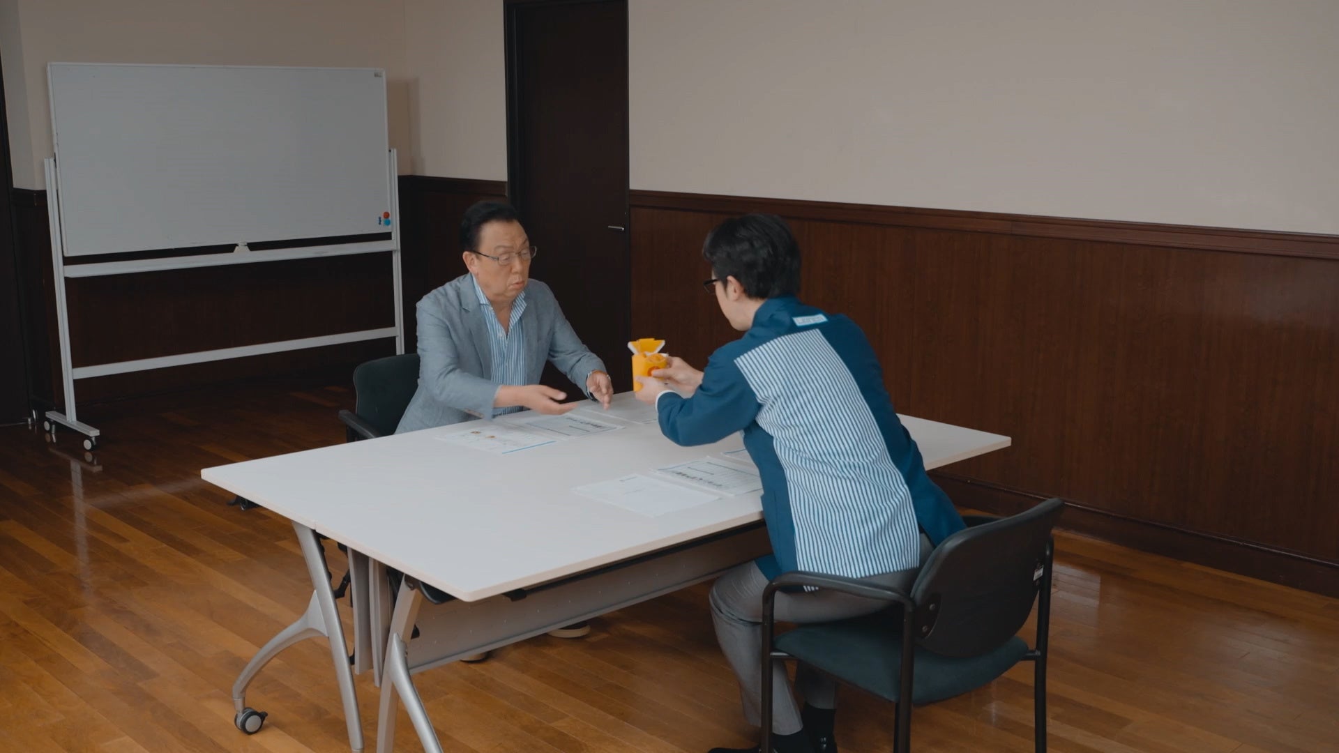 長丁場の撮影にも関わらず、本番の合間でジョークを交えた話をスタッフや他の出演者に振ってくださる梅沢さん。動画でのご立腹モードとはまた別の柔らかい雰囲気で、終始笑いの絶えない和やかな現場となりました。梅沢さんは撮影を振り返り「始めから終わりまで笑いの渦だったですね。」「とっても楽しい“笑い”の撮影。スタッフも途中NG出るくらい笑ってて。」と、ご自身も撮影を楽しんでいただけたようでした。