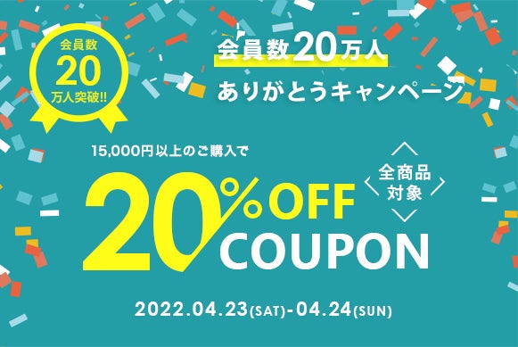 2022年4月23日-24日の2日間で、「20万人会員突破!ありがとうキャンペーン」を開催します。