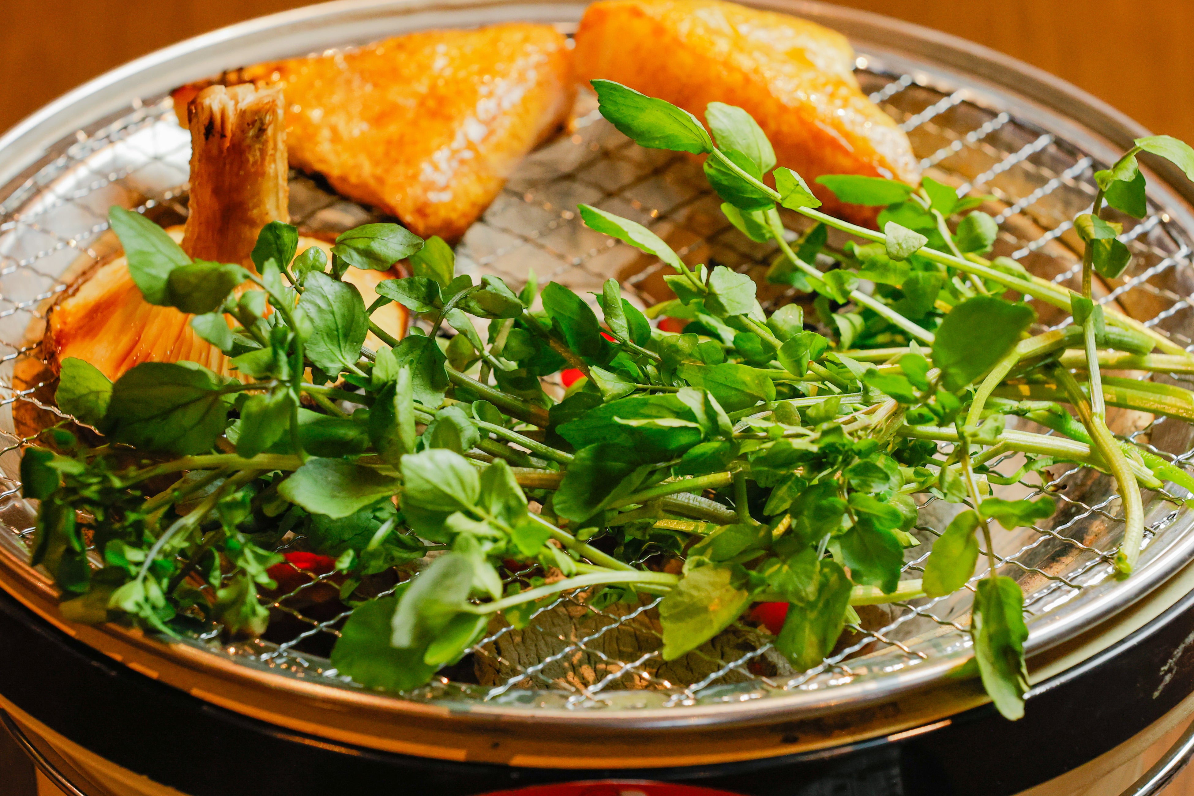 新鮮なうちにお客様にお召し上がりいただきたいため、地元の生産者から食材を仕入れております。ガスコンロではなく、あえて日本古来の調理器具である七輪を使い炭火焼を提供しております。また、フードロスをできる限り抑えるため、平日は20名様、土日祝日は40名様限定でのご案内とさせていただきます。