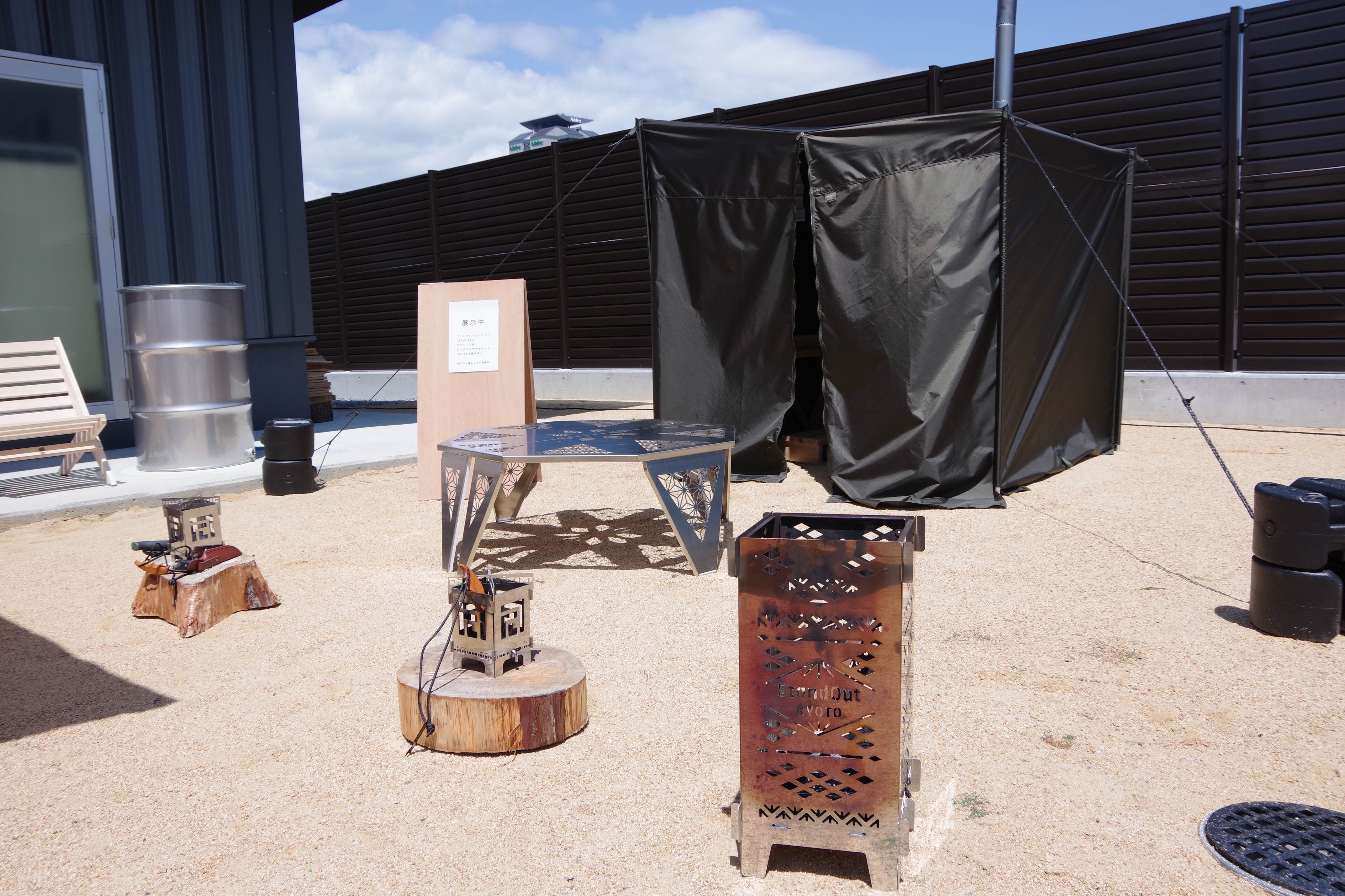 屋外ではBBQや焚き火などセルフで利用可能なスペースをオープン。食材など持ち込み可能。Div Horizonが展開するアウトドアギアを販売予定。https://divhorizon.base.shop/