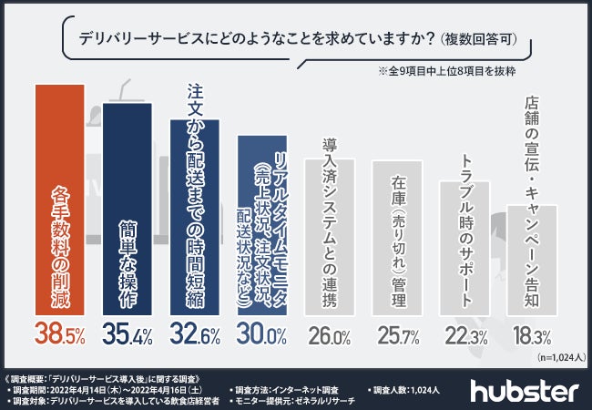 そこで今回、デリバリー一元管理システム『ハブスター(Hubster)』(https://www.tryhubster.jp/)を運営するTokyo Smart Restaurants合同会社は、デリバリーサービスを導入している飲食店経営者を対象に、「デリバリーサービス導入後」に関する調査を実施しました。