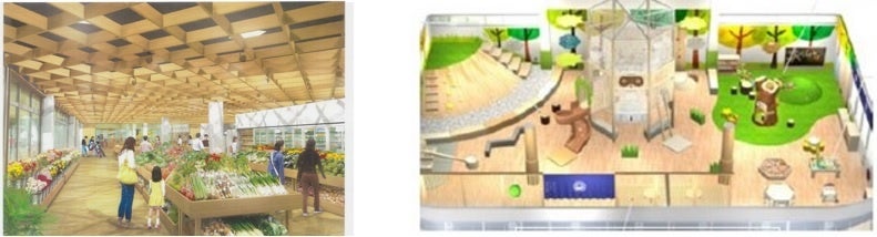 加工室3室(販売ブース有)、シャワー施設、多目的展示室、屋根付き広場、授乳室、防災倉庫、緑地(ドッグランを含む)、情報発信施設、トイレ棟 ※年中無休