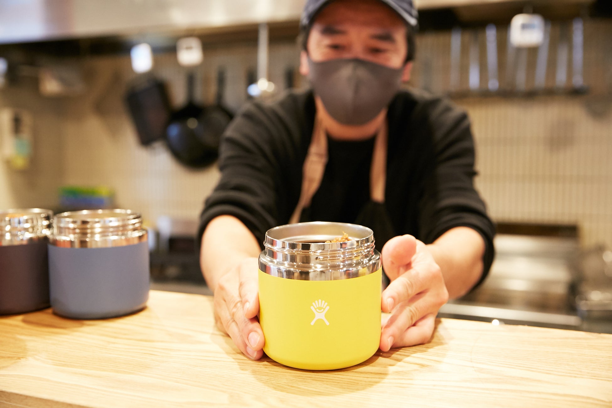 1. お弁当を事前予約します。仕入れからフードロスを減らし、リユース型のフードジャーを使用し、ゴミの持込みゼロへ。