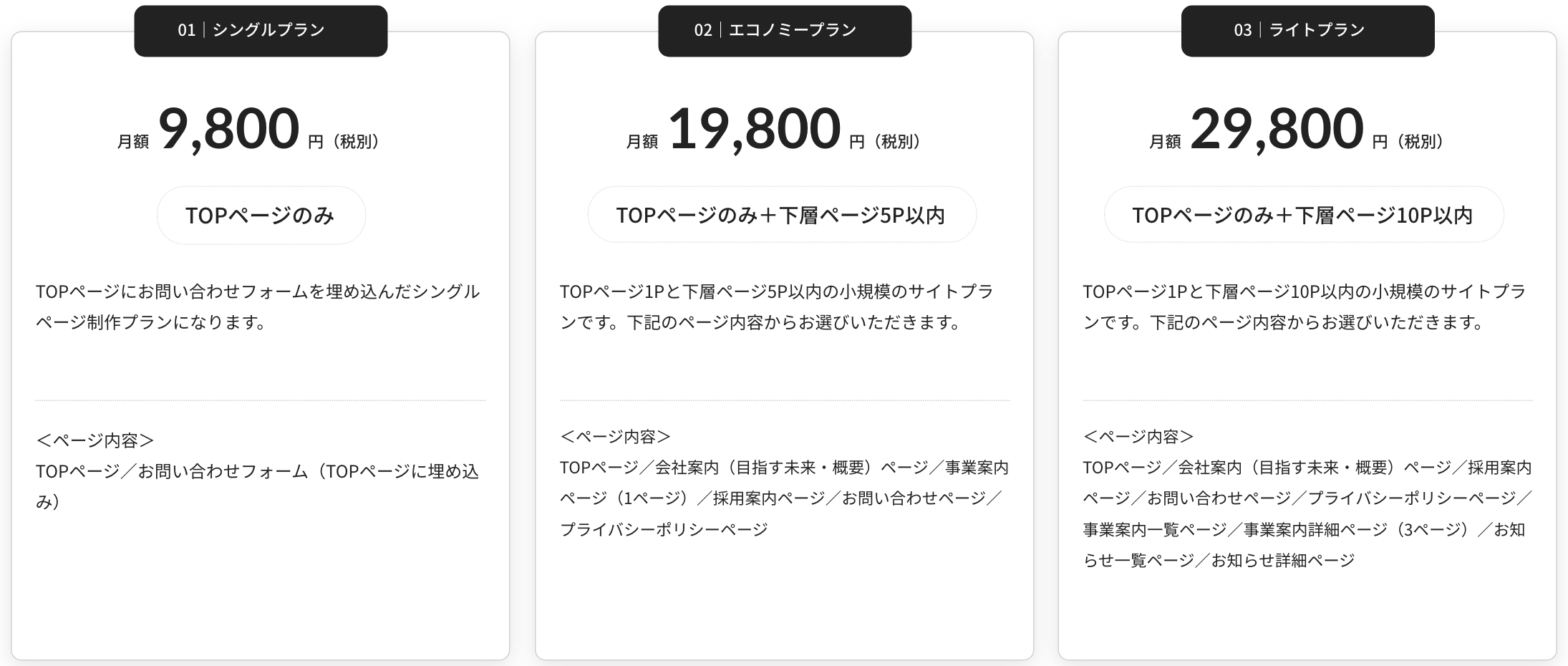 ①PRICE|初期費用0円、月額9,800円からのサブスクリプション型