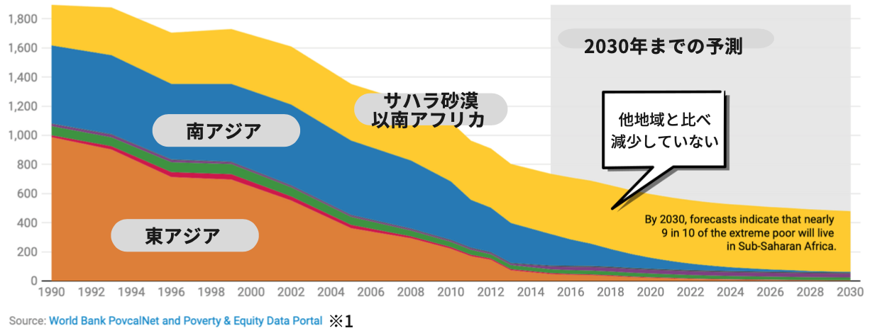 また、この30年間で世界の貧困は激減したにもかかわらず、ガーナを含むサハラ砂漠以南アフリカ地域だけは貧困が増加しています。さらに、この地域における貧困層の約60%(=約5億人)は小規模農家さんです。今後最も人口が増えていく地域にもかかわらず、農家さんを取り巻く状況は、まだまだ課題が山積みなのです。