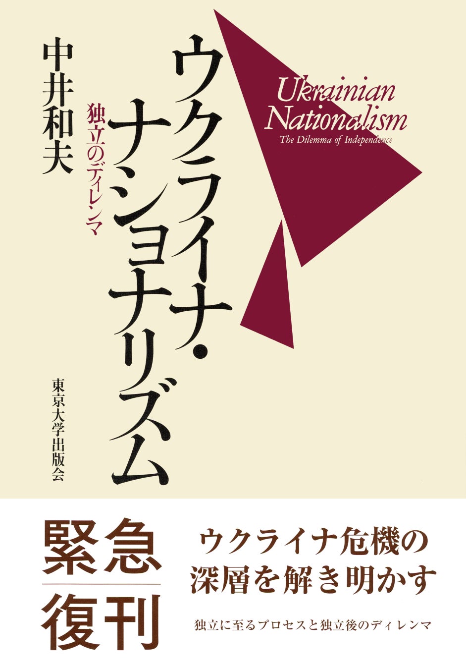 一般財団法人 東京大学出版会(東京都目黒区、理事長:吉見俊哉・東京大学教授)は、中井和夫(東京大学名誉教授)著『ウクライナ・ナショナリズム――独立のディレンマ』(1998年刊)の販売を4月11日に開始いたしました。本書はながらく品切状態でしたが、ロシアによるウクライナ侵攻を受け、この異常事態を理解するための正確な知識と分析をふたたび提供すべきと判断し、緊急復刊に踏み切りました。