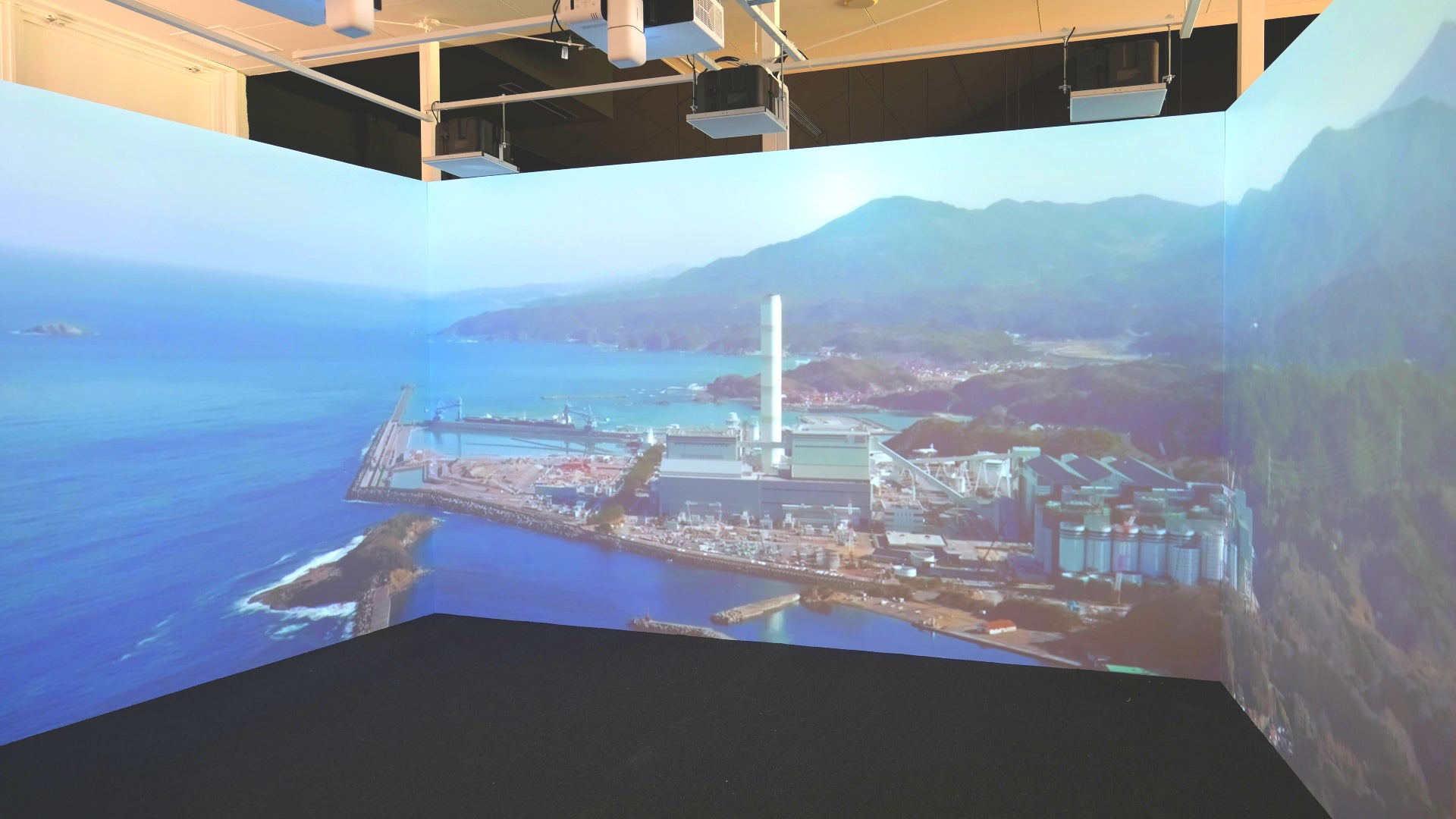 巨大な3面大型スクリーンを採用し、没入感ある映像と音響で発電所内や石炭火力発電の技術を紹介しています。