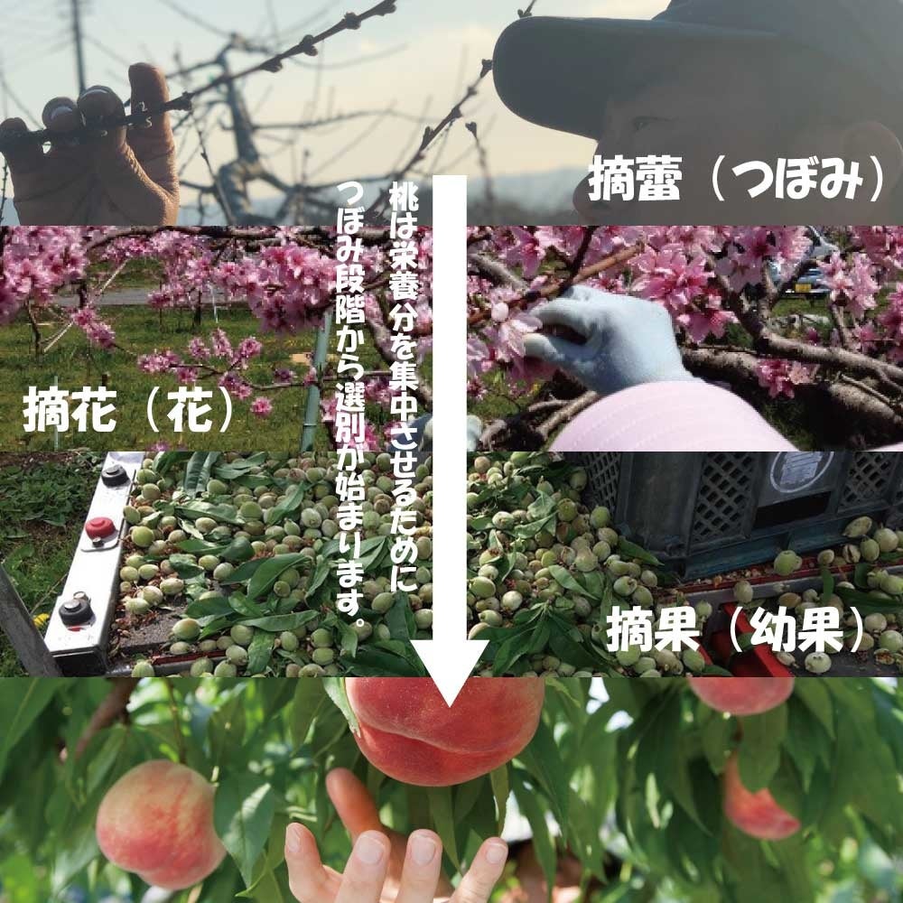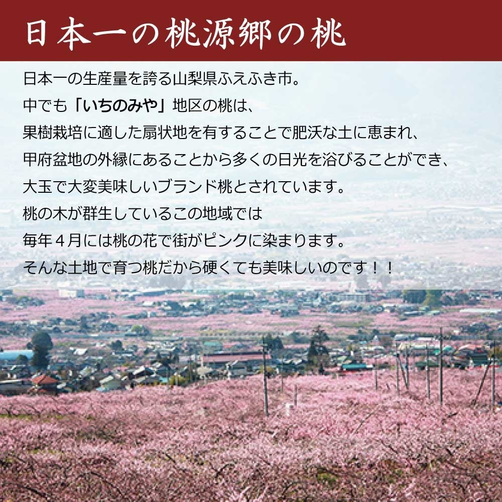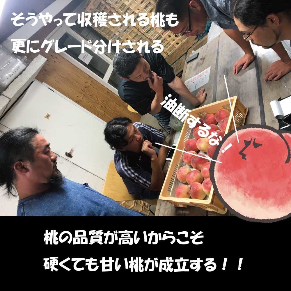 果樹栽培に適した恵まれた土地で、桃に命を懸ける桃職人に育てられる高品質な桃だからこそ、硬い美味しさが実現します!蕾の段階から選びに選び抜かれ、最後の最後に残ったものだけが出荷されます。