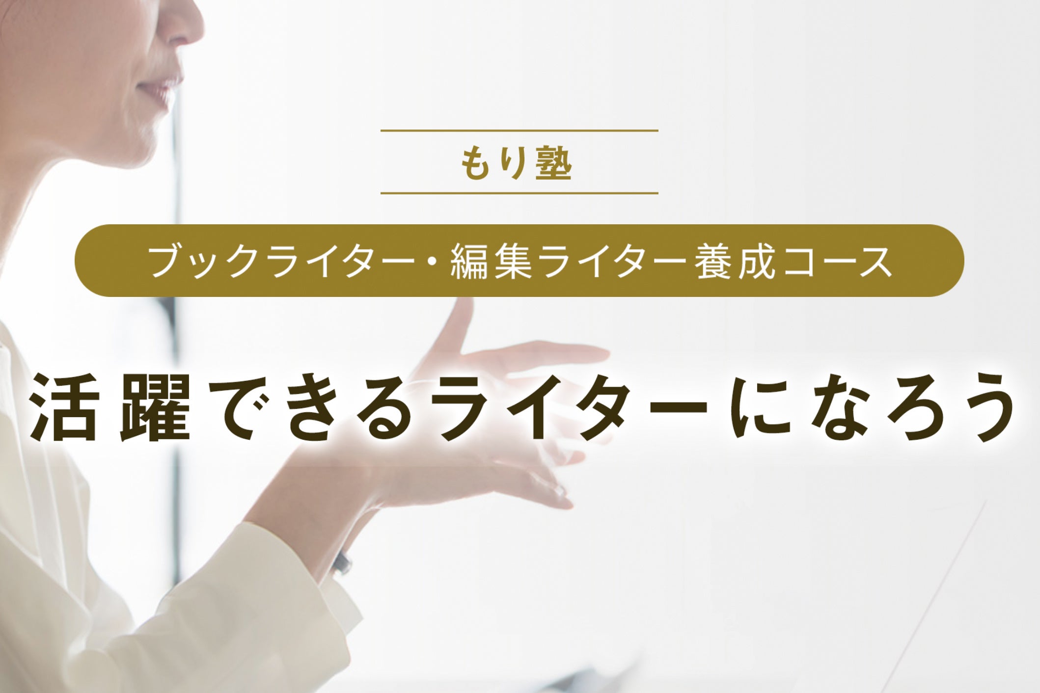もり塾「ブックライター・編集ライター養成コース」は、ライターとして活躍するために必要なスキルを1年間かけて学ぶオンライン講座です。