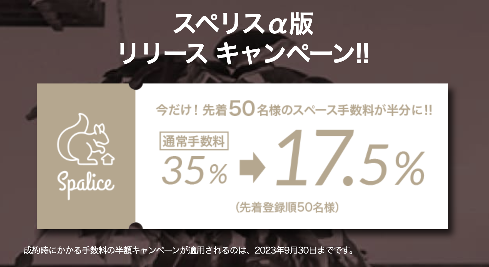 またスペース貸し出しの際にかかる手数料を先着で約1年間半額になるキャンペーンを展開します。