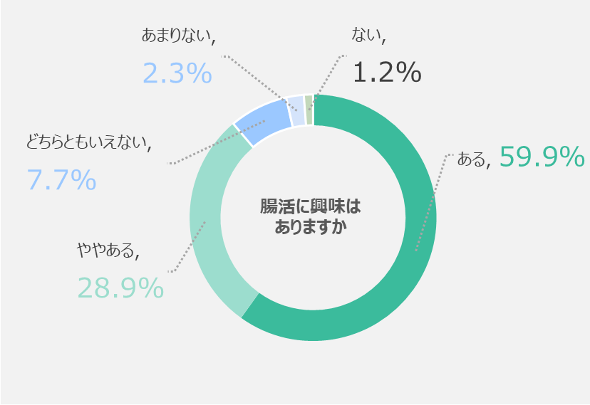 FiNC総研が2021年に実施した腸活に関する意識調査※3によると、腸活に対して興味が「ある」または「ややある」と肯定的に答えたユーザーは約9割で、「腸活」への興味・関心の高さが明らかになりました。