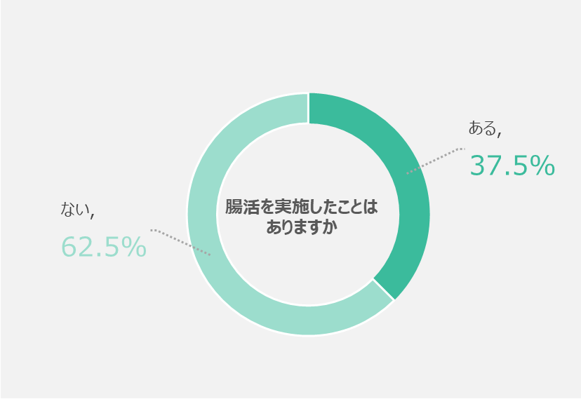 腸活への興味・関心が高い結果となった一方で、「腸活をしたことがない」ユーザーの割合は約6割と高く、日頃から腸内環境に何かしら不調を感じ、「腸活」自体に関心はあるものの実践にまでは至っていない現状が伺えます。