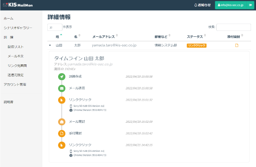 ・訓練対象者のステータスも細かく、リアルタイムに把握可能。