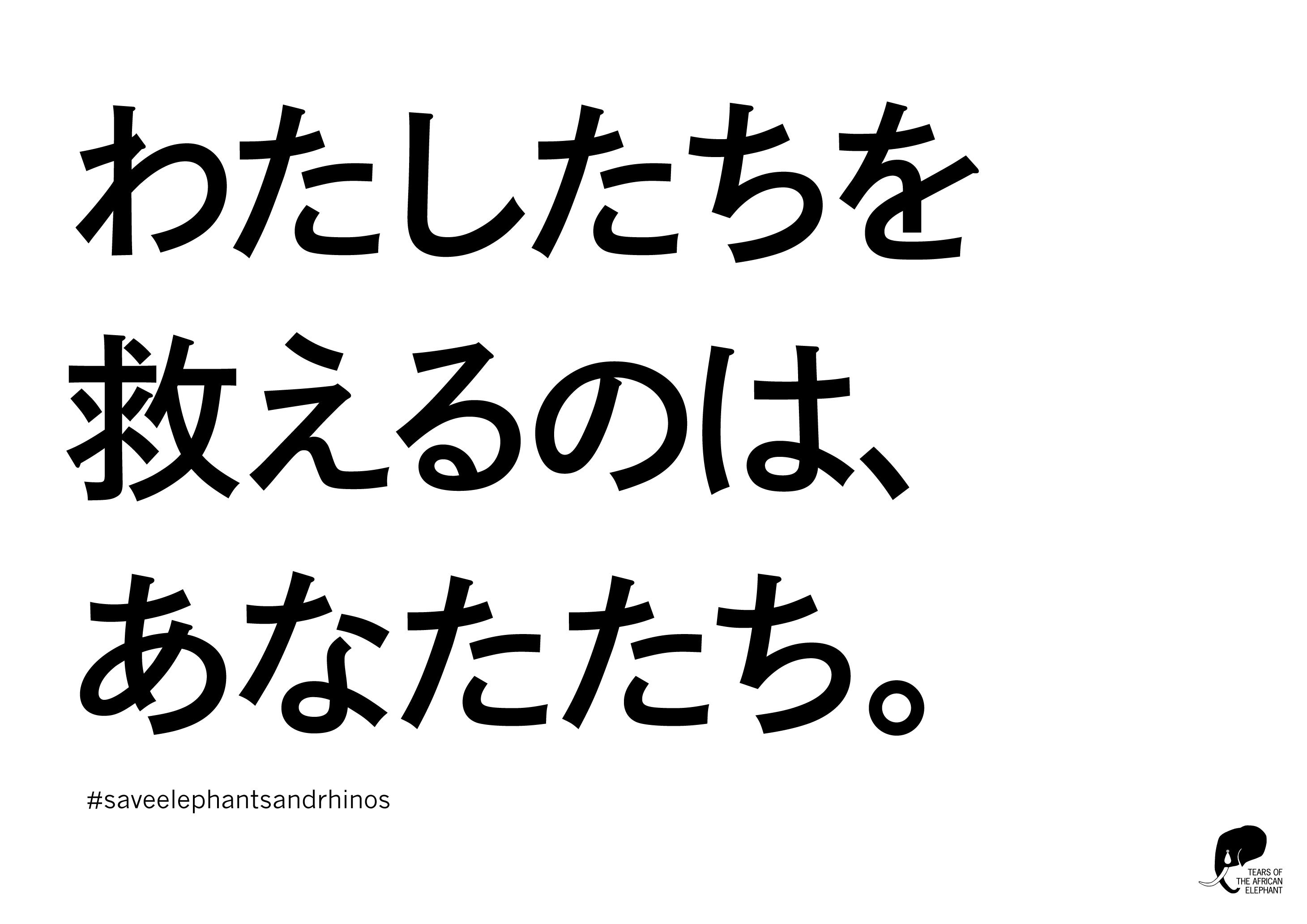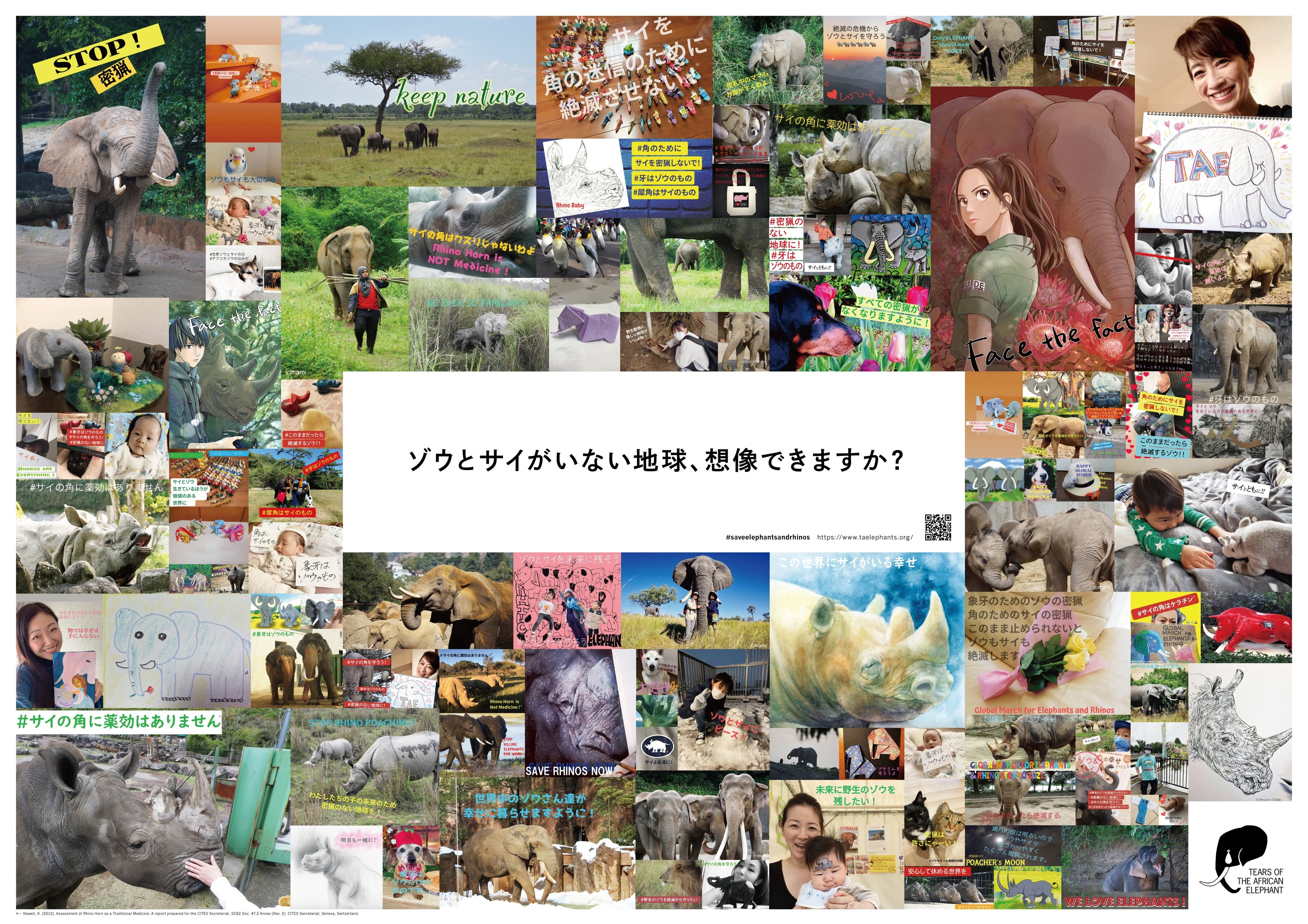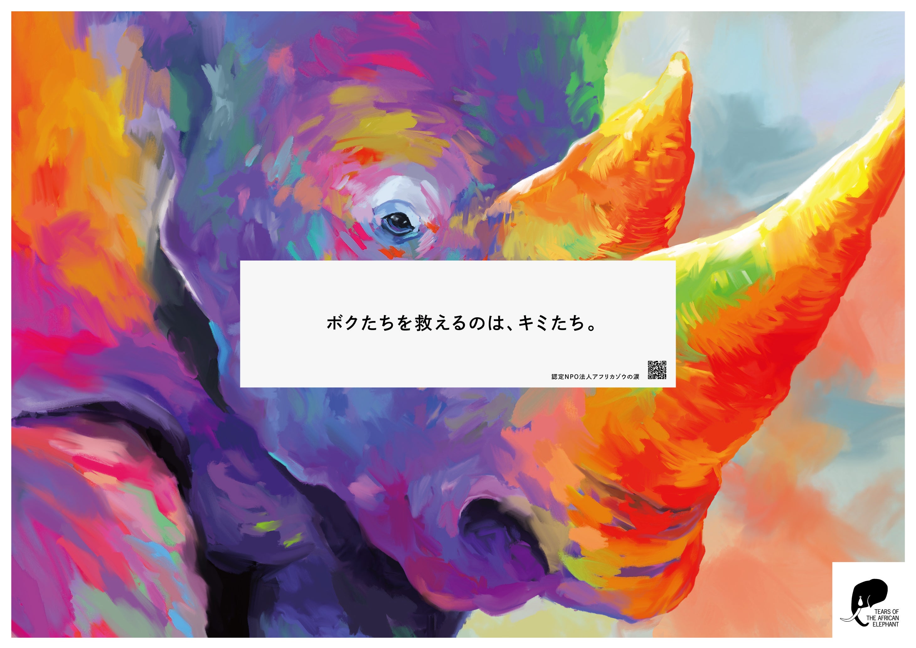 認定特定非営利活動法人アフリカゾウの涙は、日本における象牙販売・取引への問題提起、さらにベトナムや中国におけるサイ角使用の根絶を訴えるプロジェクトGlobal March for Elephants and Rhinos(ゾウとサイのためのグローバルマーチ)を開催します。8回目となる今年は「フォトマーチ」と称してゾウやサイにまつわる写真やイラストを公募、集まった108枚の写真を用いて絶滅の危機に頻している野生動物のいのちを守ることを訴える広告を制作しました。