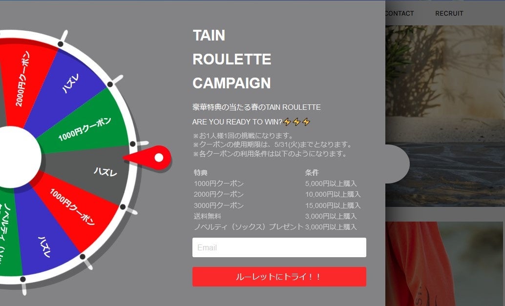 メールアドレスを入力して「ルーレットにトライ!!」をクリックするだけ。