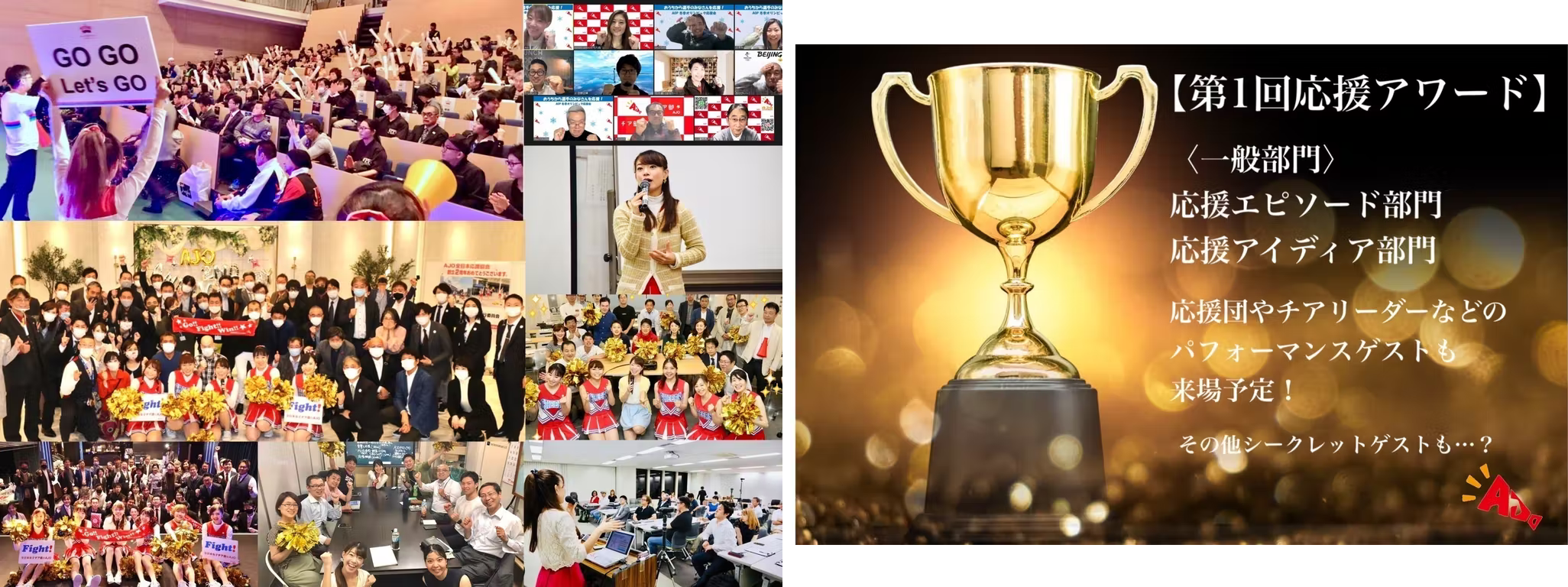 また、AJOの理念は「応援文化を広め、世の中を元気にする」ことです。ミッションは「応援を創り、応援を学び、育み、実践し、広げる」こと。応援の文化を広げるには、まず自分の周りに応援が溢れていることに気づくこと、そして応援そのものに携われるチャンスを作ることが必要だと考えました。応援をみんなが考えて実践し、波及していくような機会をつくりたい!この想いこそが、応援アワードを開催しようと思ったきっかけです。