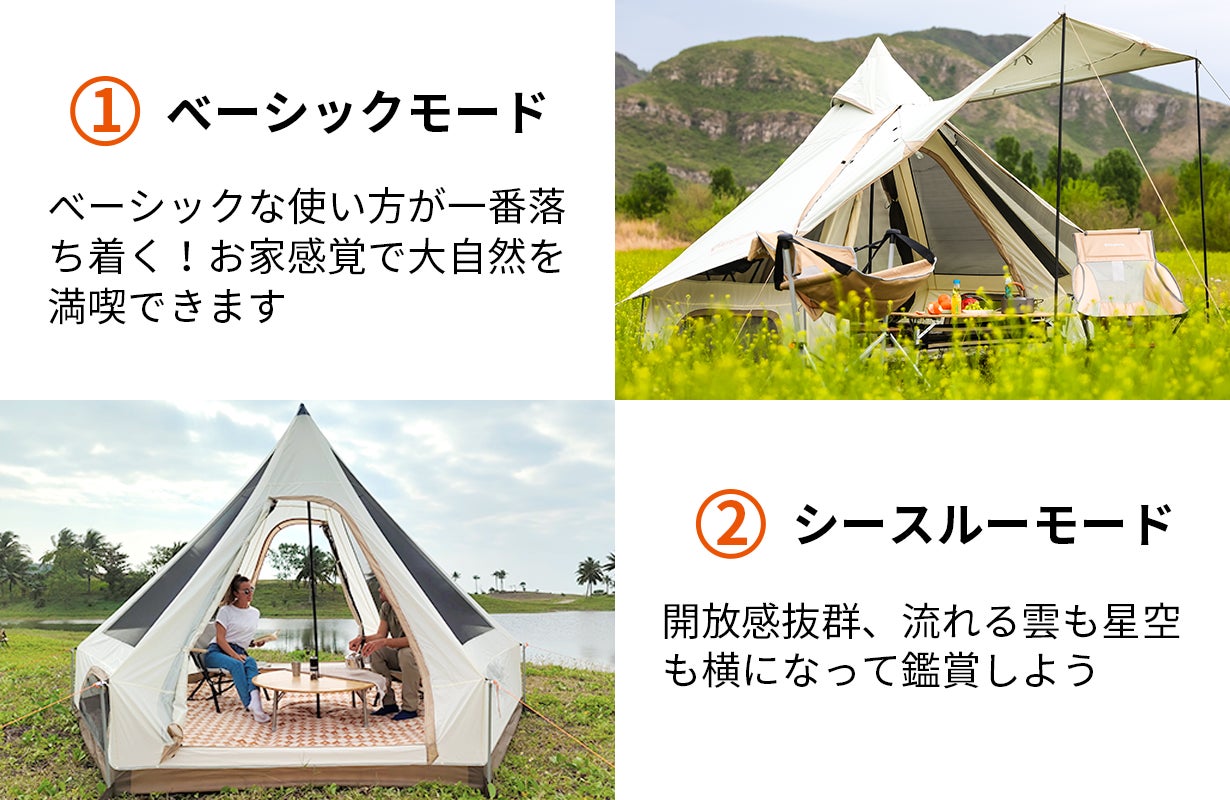 ◼ 変形自在、4タイプのテントを一度に楽しめる4 in 1