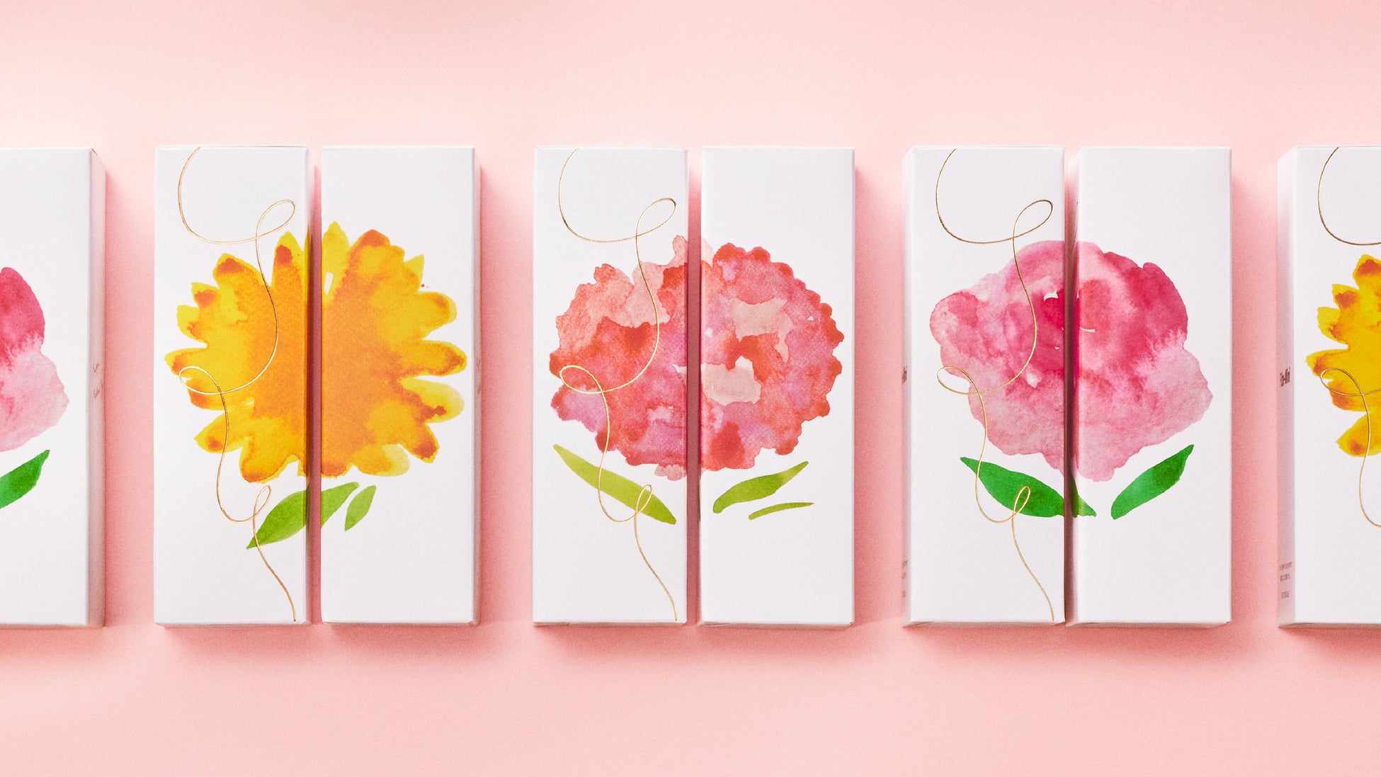 BOXには、母の日の象徴であるカーネーション、「健康」が花言葉の黄色いマリーゴールド、プレゼントとしてよく選ばれるバラといった上質なイラストをあしらっています。どれがもらえるかわからないワクワクをお楽しみください。