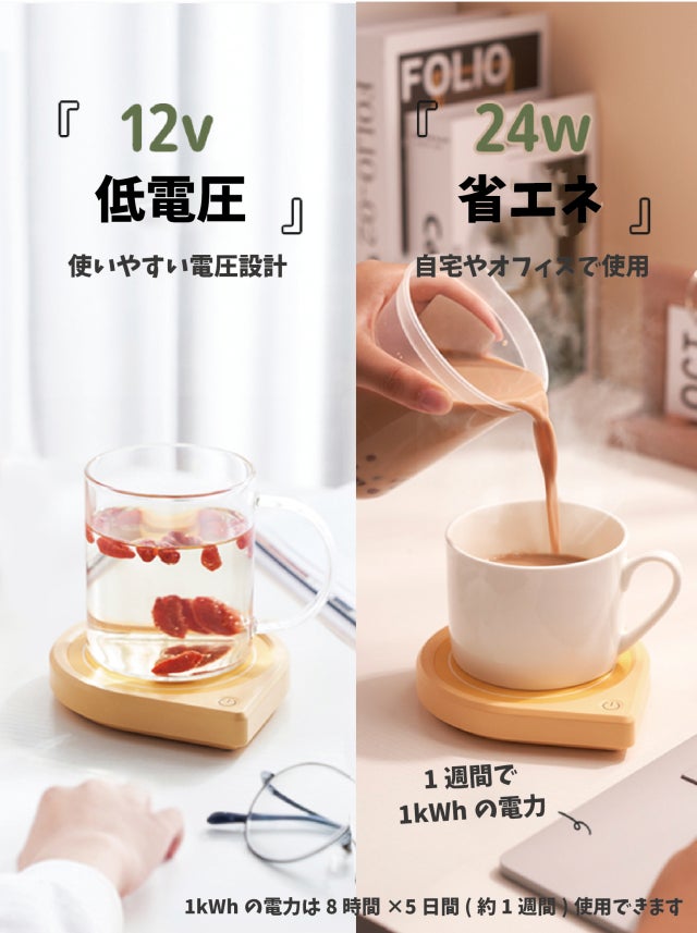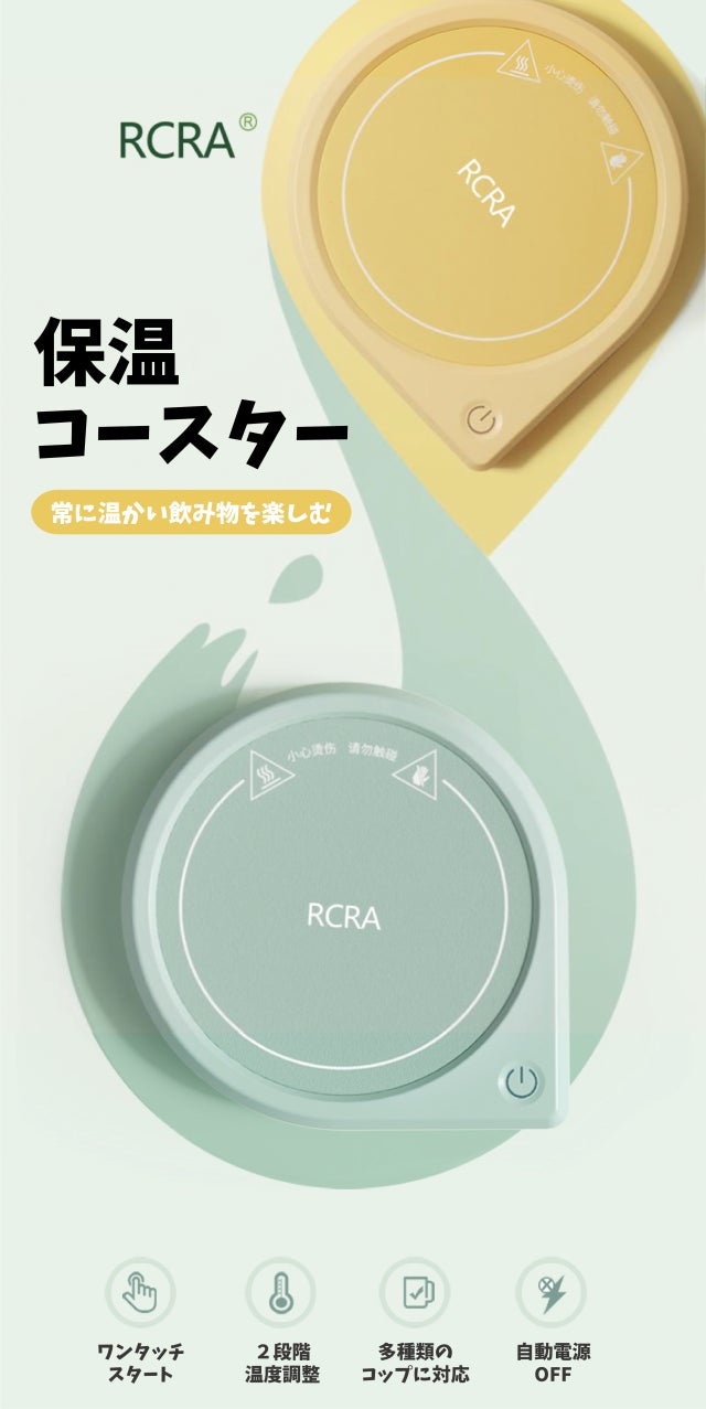 「保温コースター」は、高温75度と低温55度の2段階調整が可能で、デスク上で多種類のコップや食べ物・飲み物を温められるコースターです!