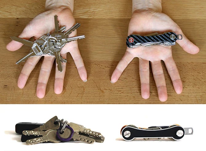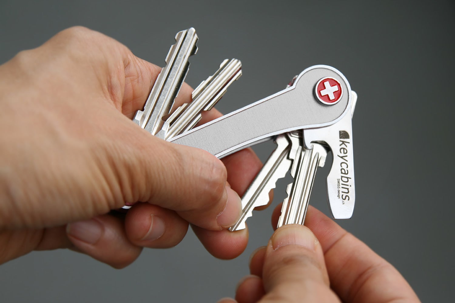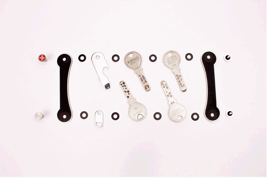 keycabinsなら、スイス・アーミーナイフのように複数の鍵をスタッキングして収納することで、ジャラジャラした鍵束がスッキリした見た目になり、スマートに持ち歩くことができます。