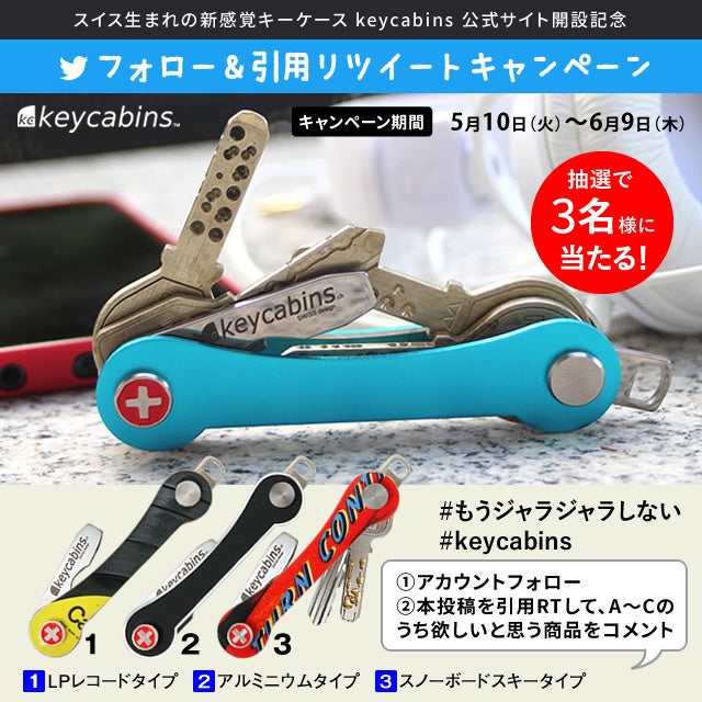 1.keycabins 公式Twitterアカウント(@keycabins_JP)をフォローしてください。