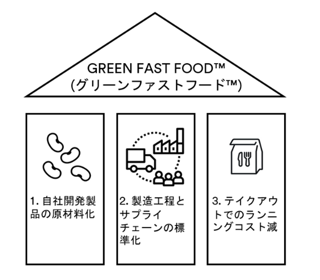 そういった課題感を解決するために、1. 自社で開発している大豆発酵食品を原料と使用し、2. 製造業としてのノウハウを生かした工程の標準化やサプライチェーンの構築をはかり、3. テイクアウトスタイルでのオペレーションコストを減少させることによって、より多くの方に食生活の選択肢の一つとして自然にプラントベースの食品を楽しんでもらえるよう「GREEN FAST FOOD™(グリーンファストフード)」が誕生しました。