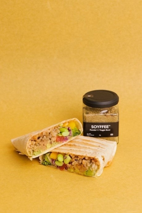 ▼商品名:「SOYFFEE™(ソイフィ―) 発酵ブリト―」フレーバー三種類(テリマヨ、タコ、ブッダ)