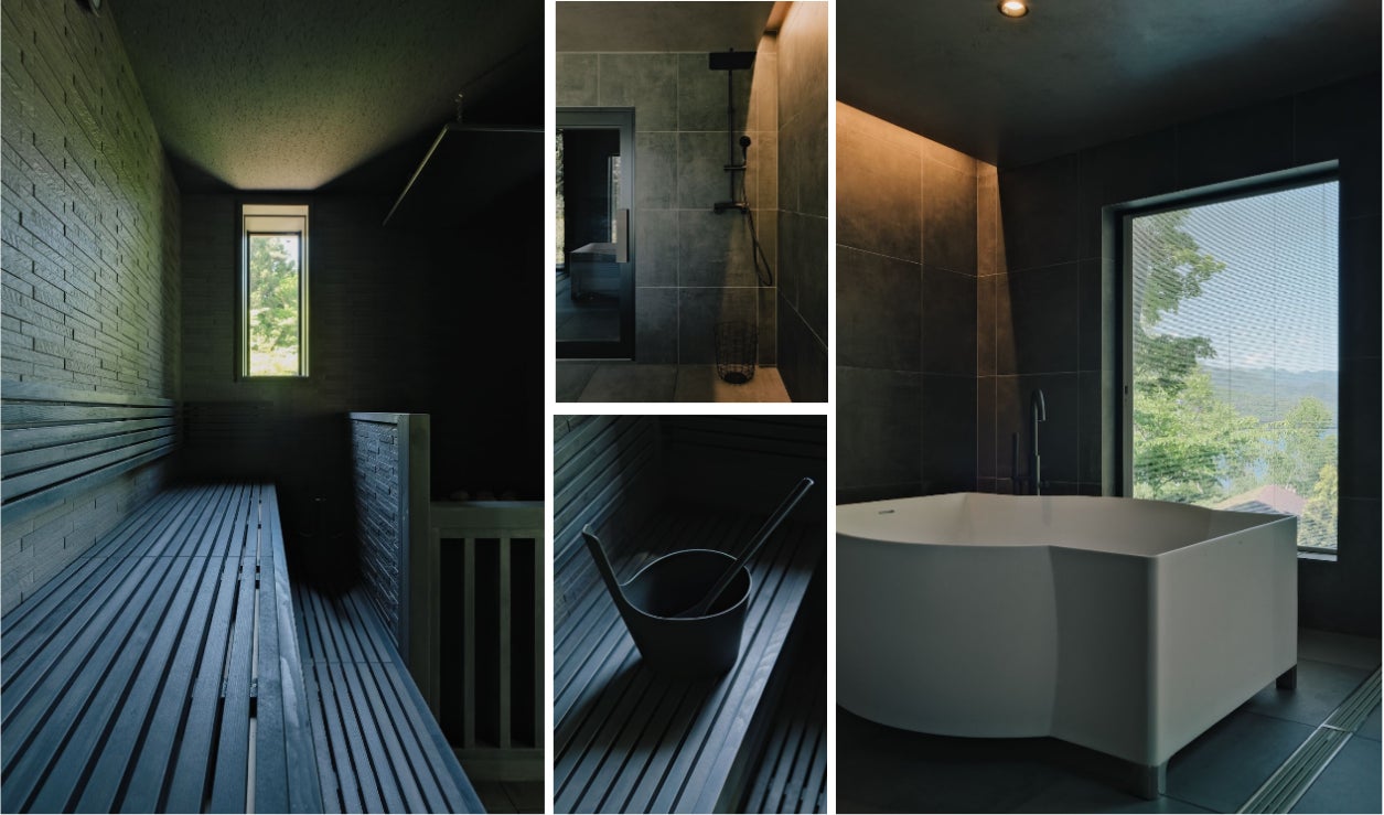 湖や森の景色が望めるプライベートサウナを設置。お気に入りの音楽を聞きながら、オリジナルブレンドのアロマでロウリュをお楽しみいただけます。