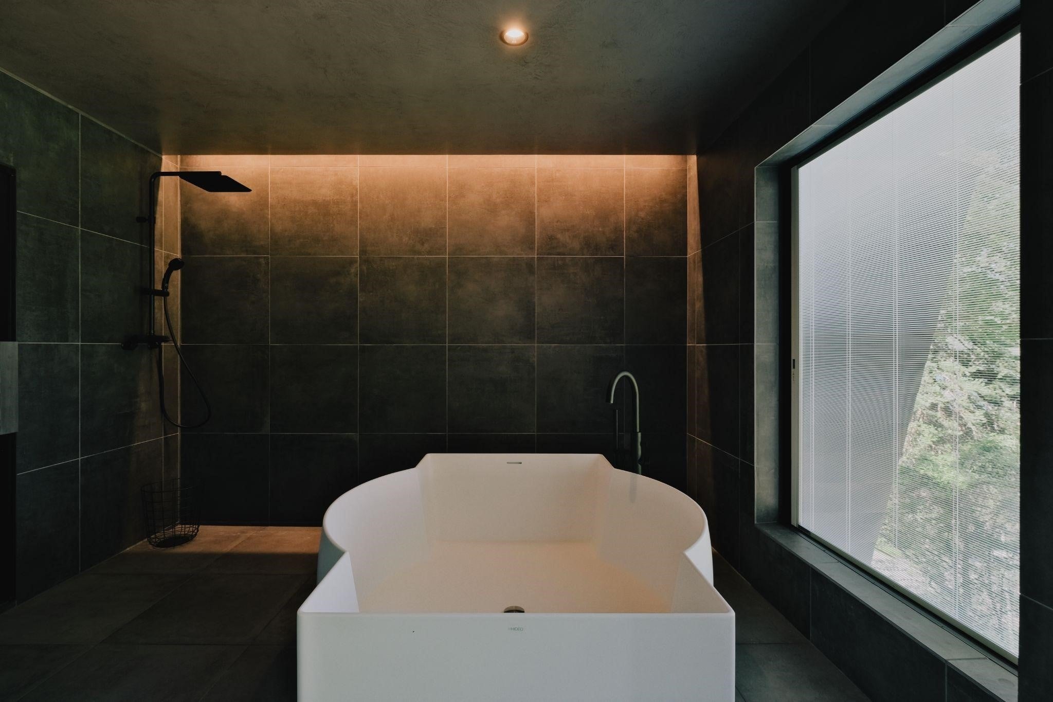 サウナからつながるアウトドアバスルームでは、湖を見ながらの入浴や、サウナ後の水風呂を楽しんでいただけます。イタリア製の本バスタブは、日本のホテルでは初。そのままバルコニーにつながり「ととのう」こともできます。