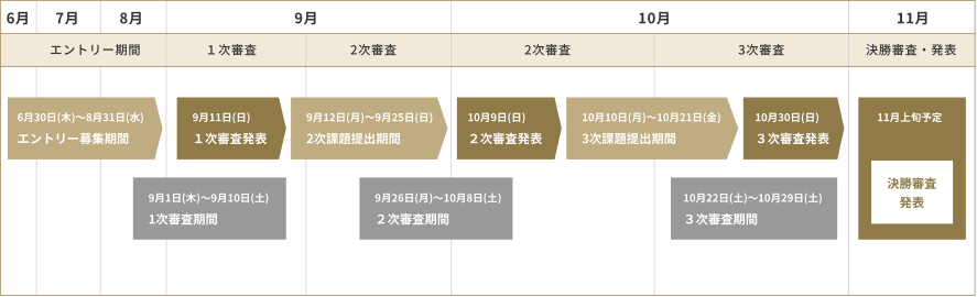 1次審査 ・・・ 9月1日(木)〜9月10日(土)/結果発表:9月11日(日)