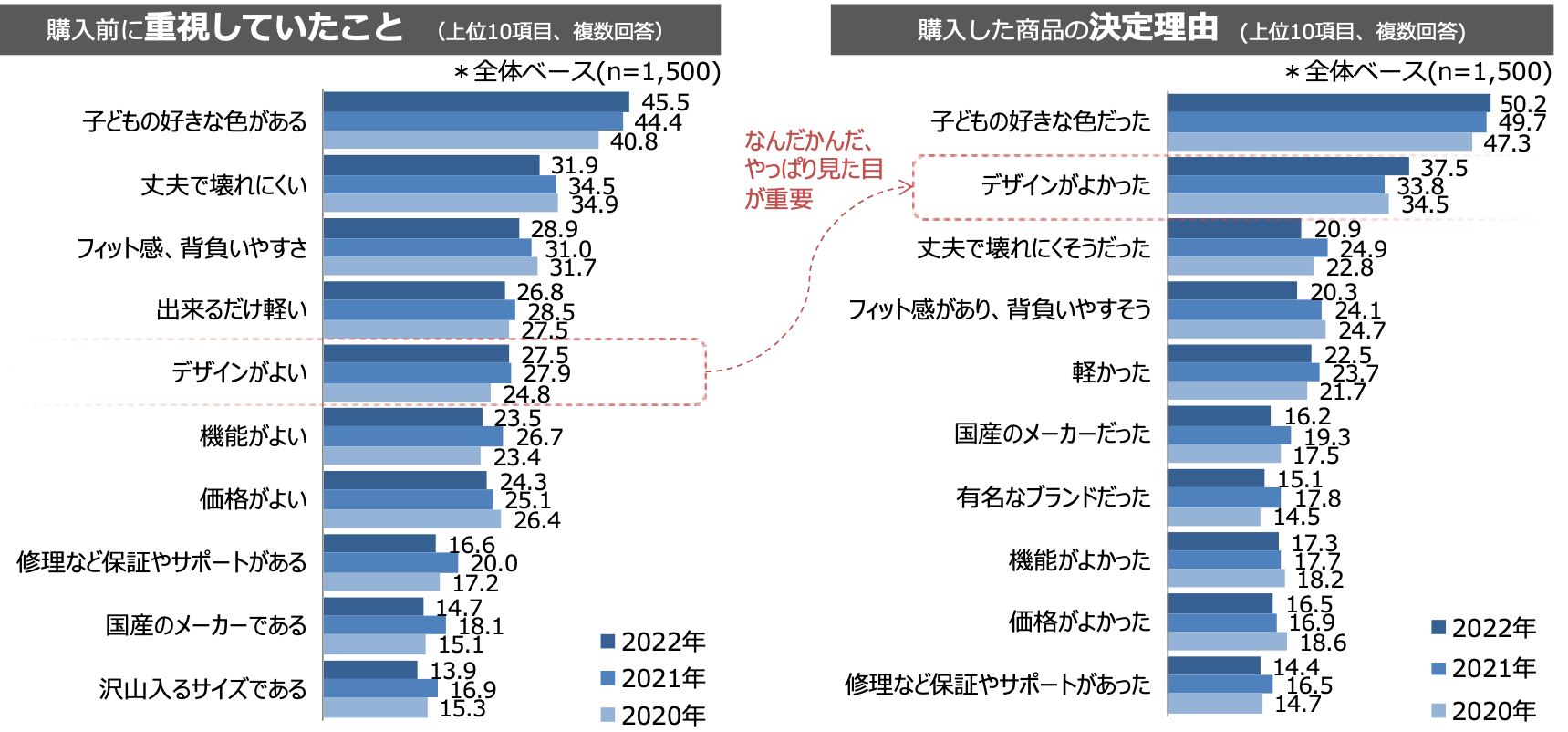 「デザイン性」が「丈夫さ」を逆転