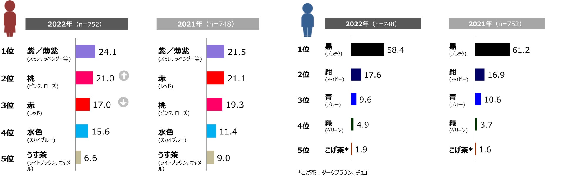 ■「女は赤、男は黒」の概念は一層の減少傾向に