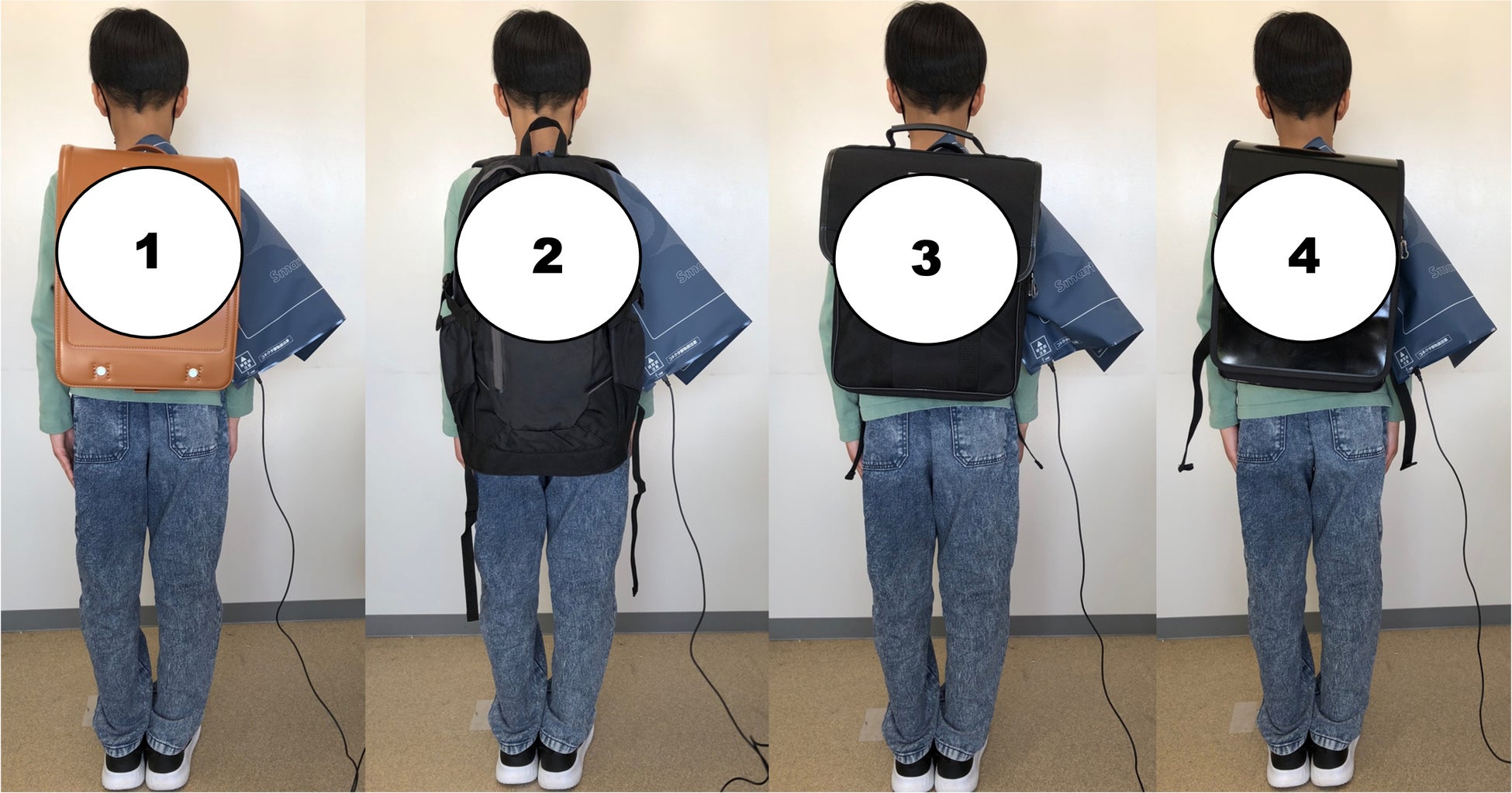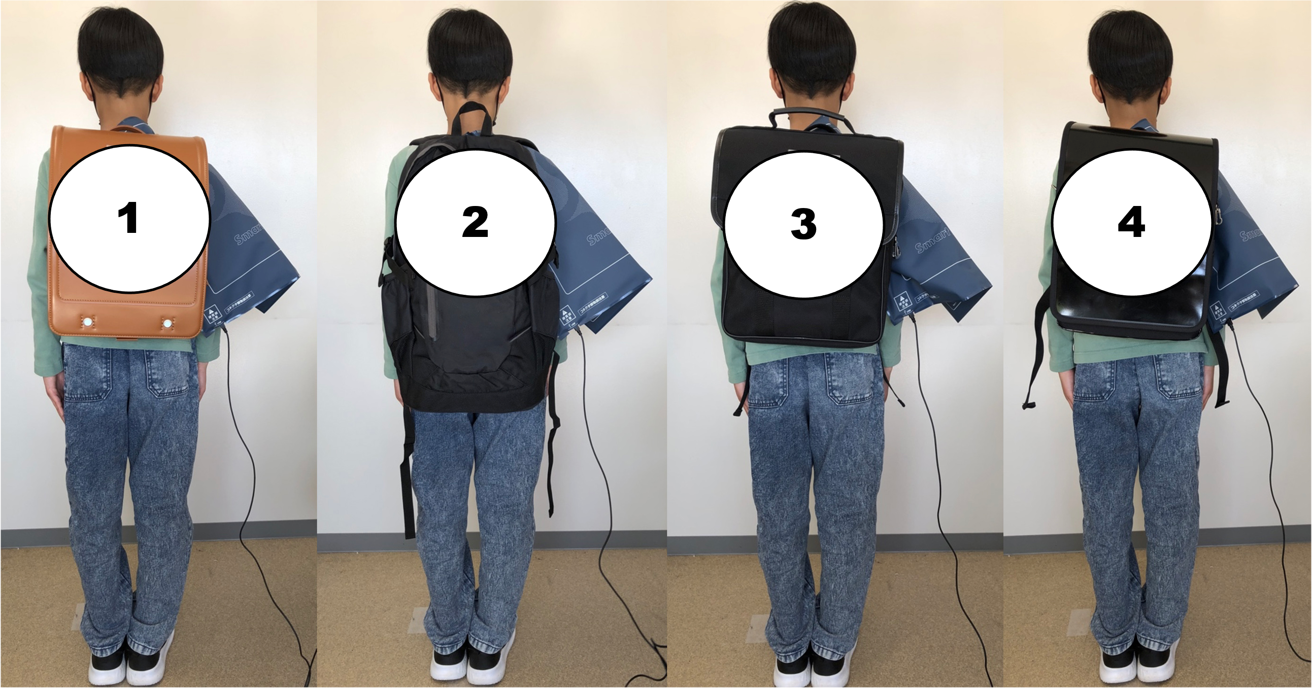 今回の実証実験では、4種類の鞄の背負い心地を比較しましたが、ランドセルの肩ベルトが下底部で固定されているために背負って歩く時に安定しており、また、ランドセルは圧分散にも優れています。ランドセルは、お子さんにとって負担が少なく、背負って歩く時の不快感も少ないといえるでしょう。