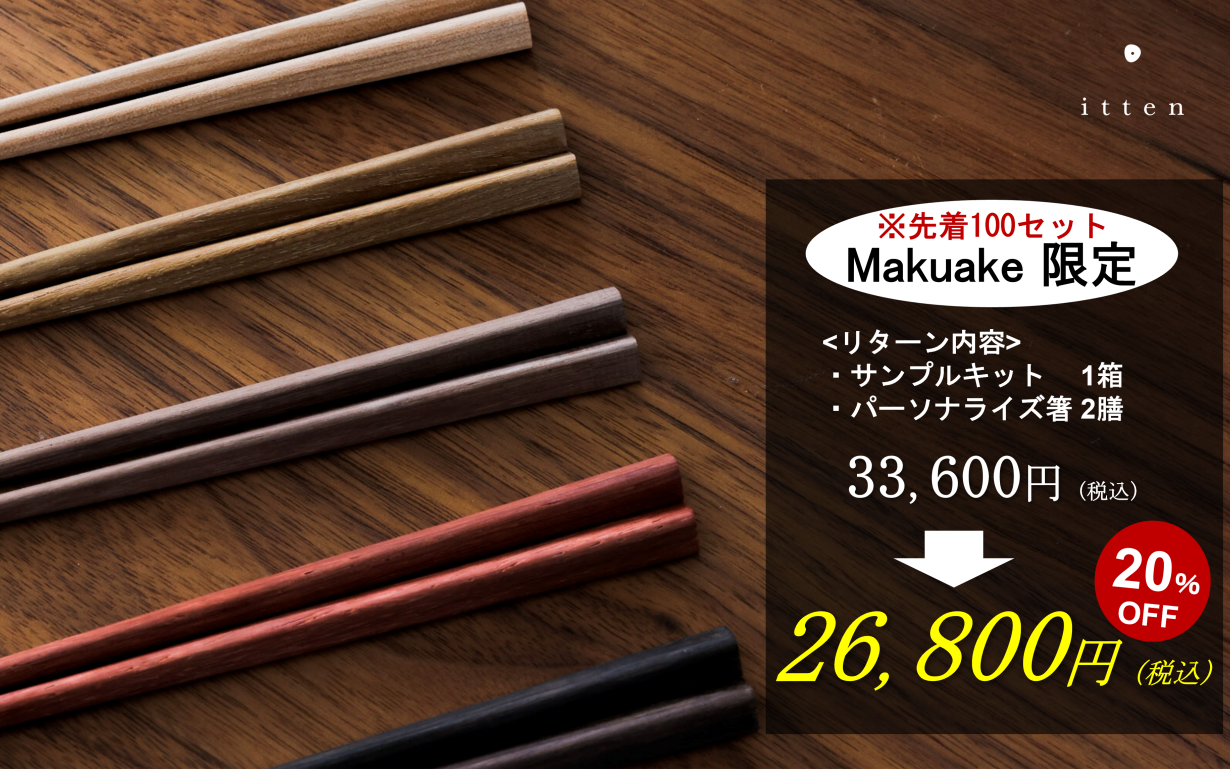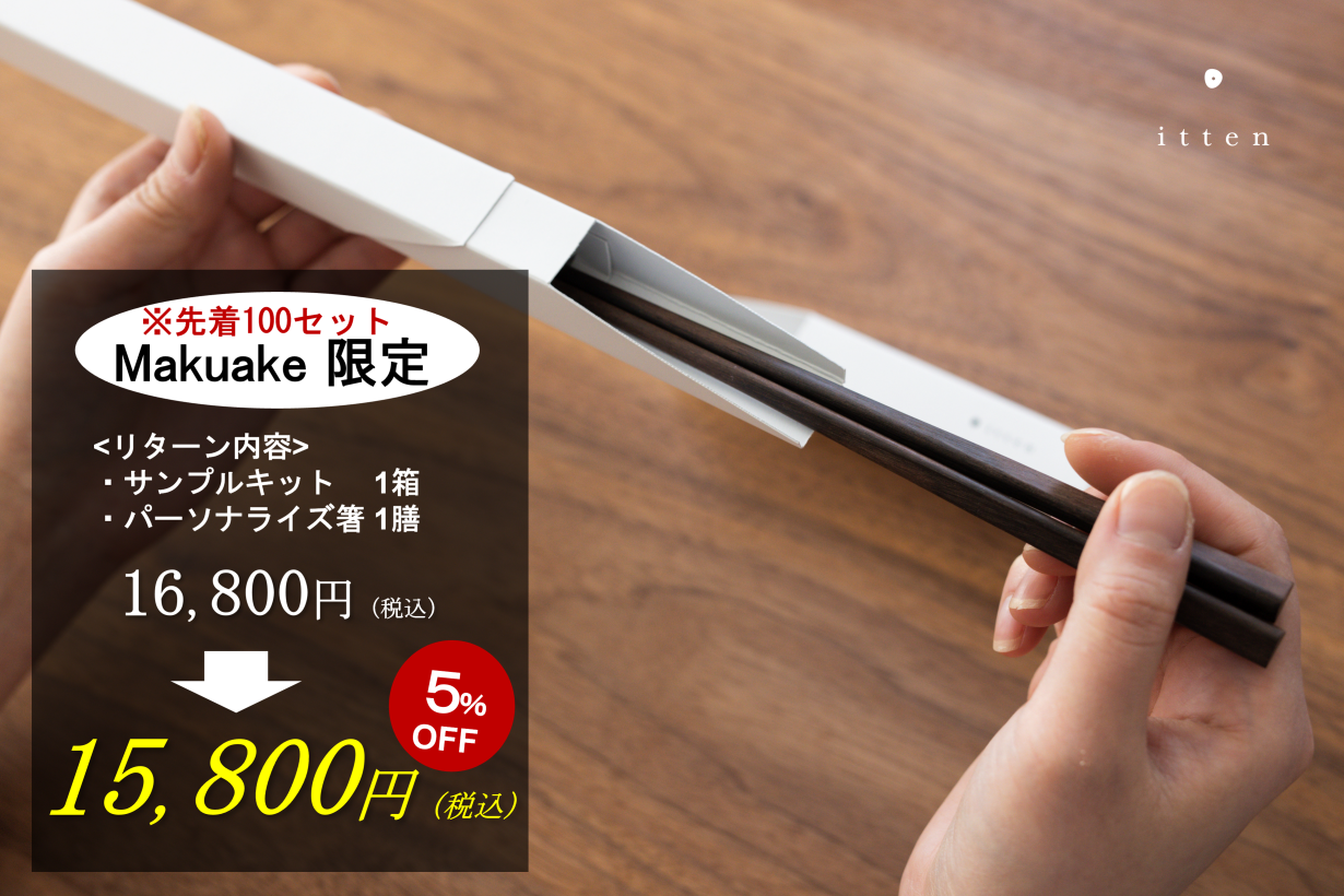 お箸のパーソナライズサービス「itten」を展開する株式会社ハルノネは、2022年5月10日から応援購入サービス「Makuake」にて、数量限定の先行予約販売を開始いたします。