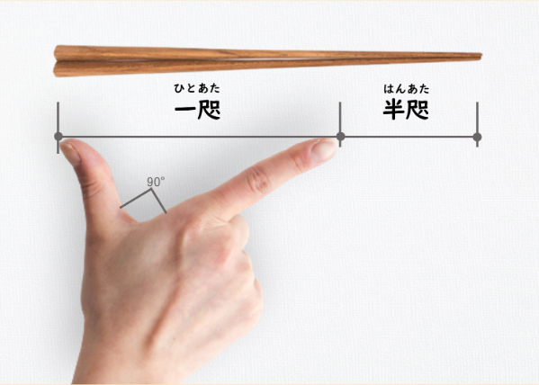 「親指」と「人差し指」を直角に広げた長さが「一咫」、