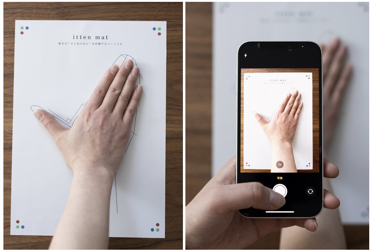 そこでittenは「itten mat」の上に利き腕の手をのせ、スマホで自身の手を撮影。