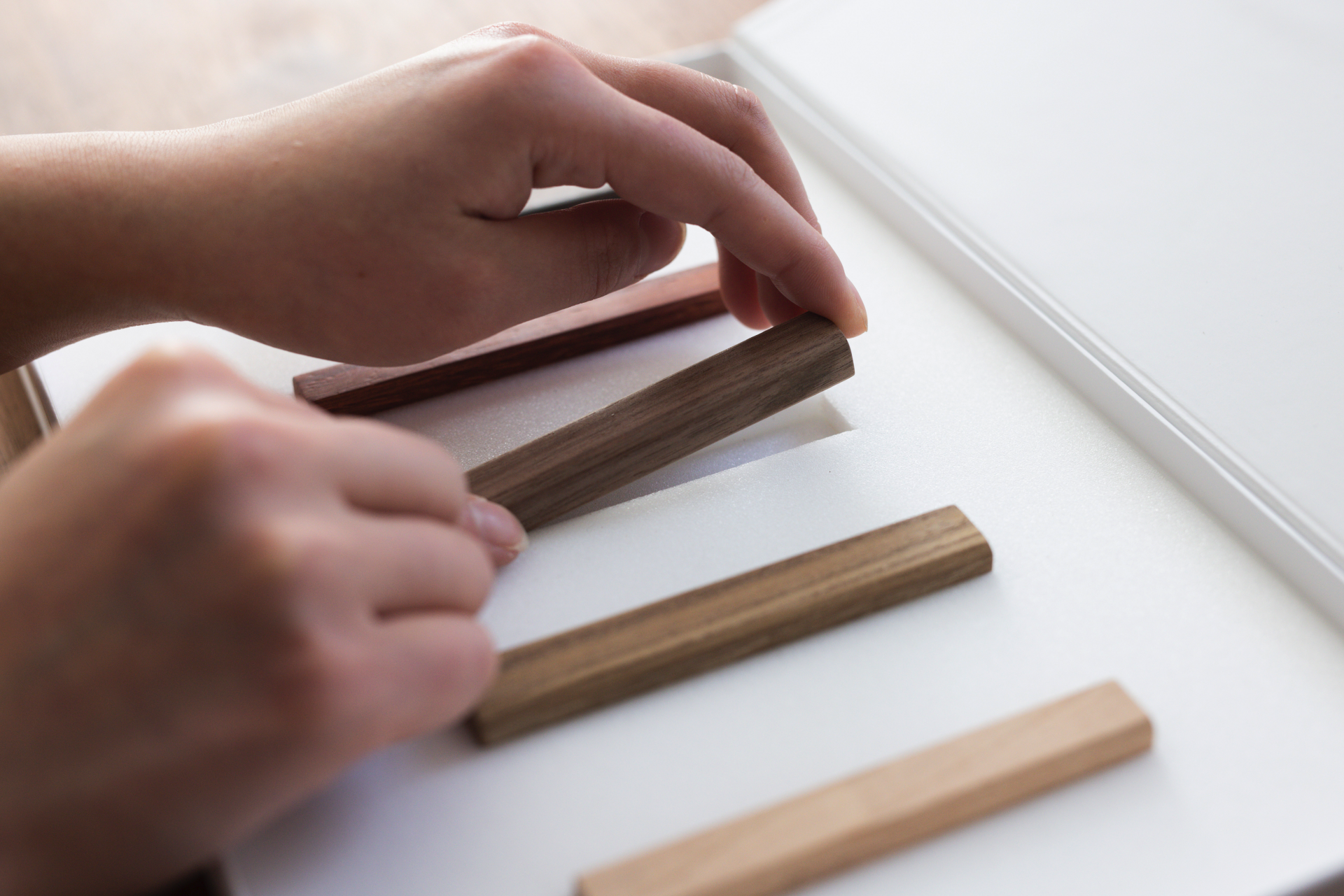 一つ一つの木材を手に取りながら、