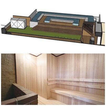 地下1000mからの鉱水(天然水)を使用した「掛け流し水風呂」・天然水を利用した飲食メニュー。