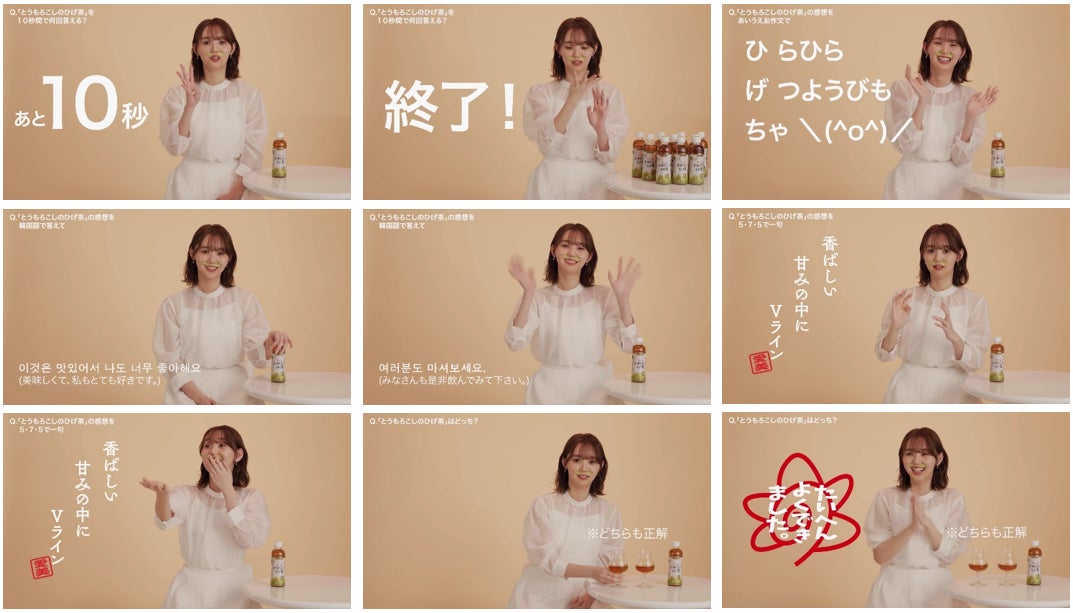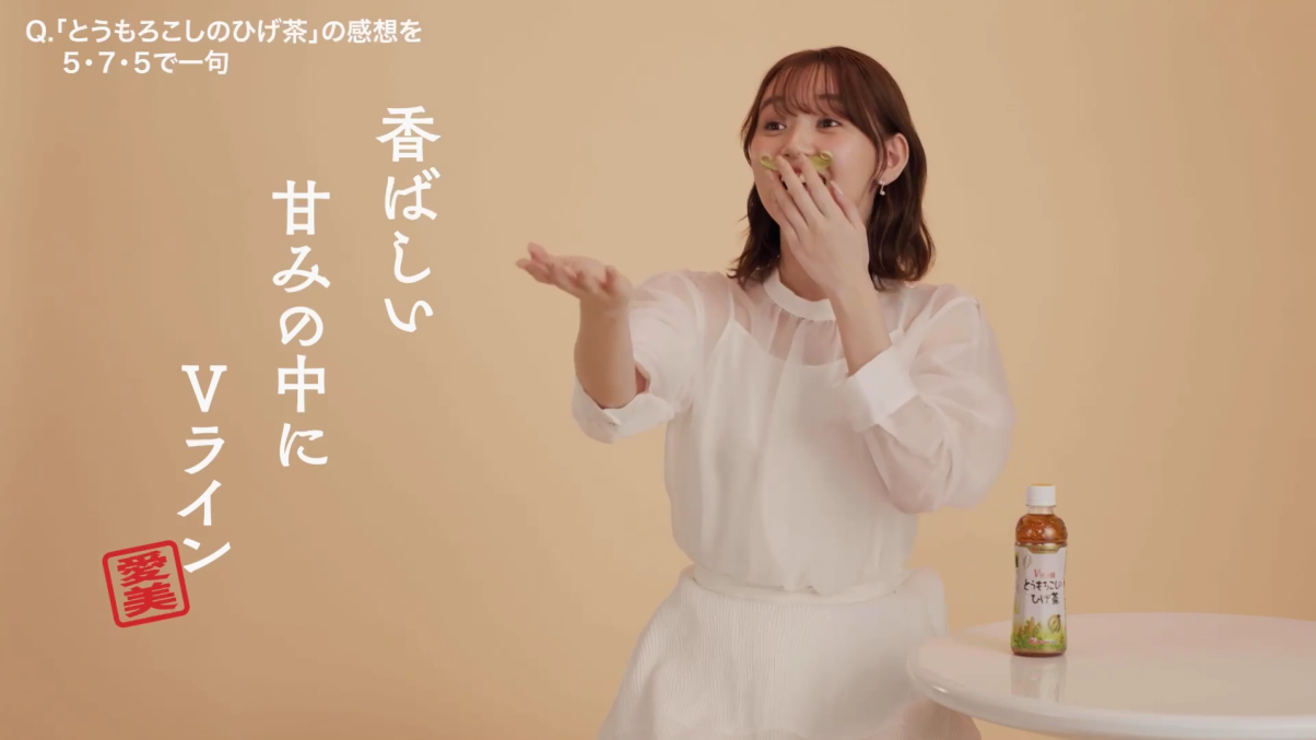 そんなとうもろこしのひげ茶の新イメージキャラクターに、韓国好きで韓国のアイテムを愛用する、モデル・女優の江野沢愛美さんを起用しました。本Web動画は、「ひげで女子を、ステキに。」というコンセプトのもと、とうもろこしのひげ茶の魅力を表現しました。江野沢さんの“ひげ”を付けたキュートな姿にご注目ください。また、「とうもろこしのひげ茶」にちなんだ様々な“ひげ茶レンジ”にも挑戦していただきました。