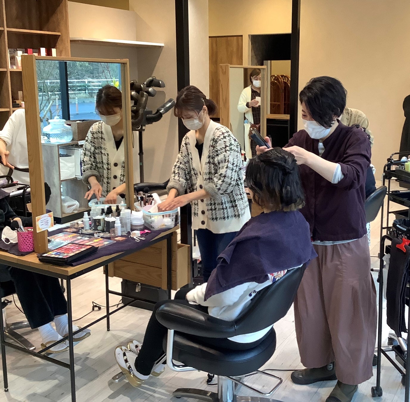 サロンワークで日頃からお客様の「なりたい」を形にしているシローの店スタイリストが成人式・卒業式・七五三の衣装決めから携わります。前年夏から準備をして問題点をクリアし和装イベント当日のお客様の要望をよりリアルに実現するための衣装展示会です。