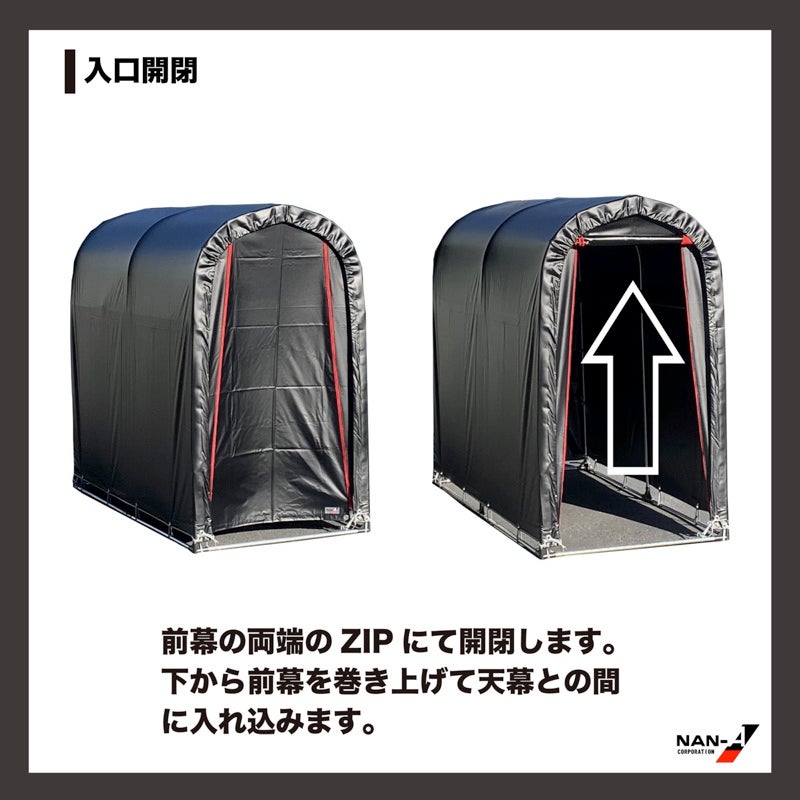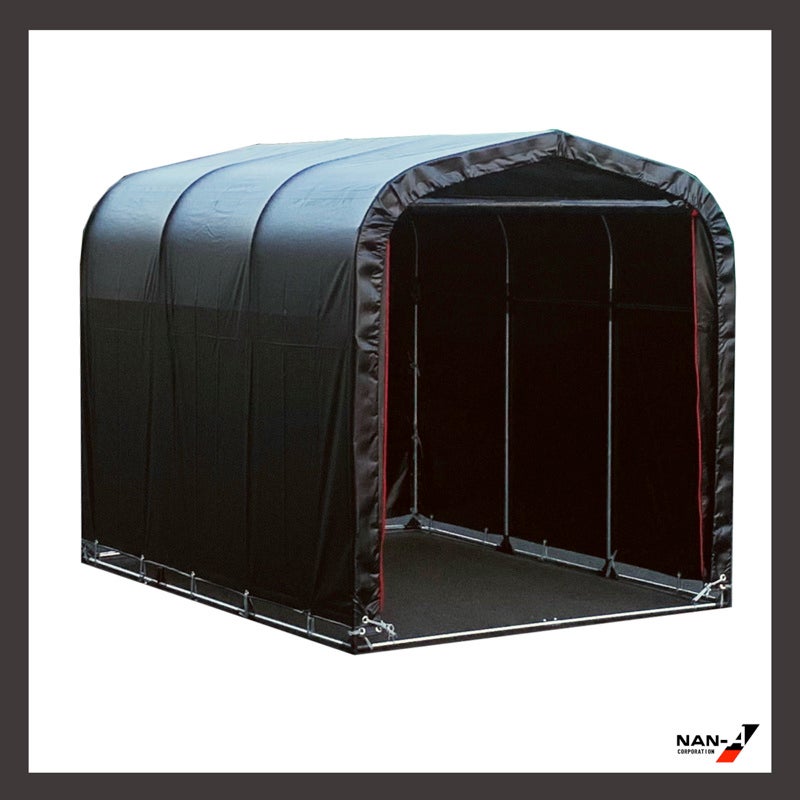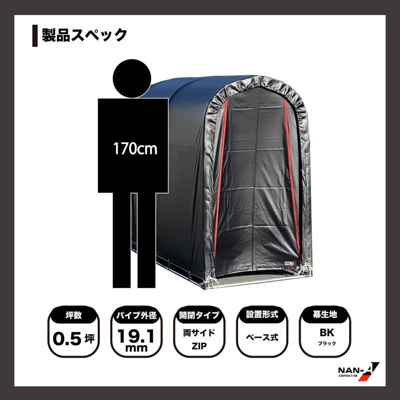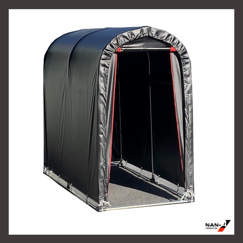 南榮工業株式会社から発売中の組立収納庫「サイクルハウスBK」は黒と赤のデザインで丈夫なターポリン素材を使用。替幕や部材の購入も可能で、長期間付き合える商品です。一部のホームセンターにて現物展示しており、ECからのお買い求めも可能です。