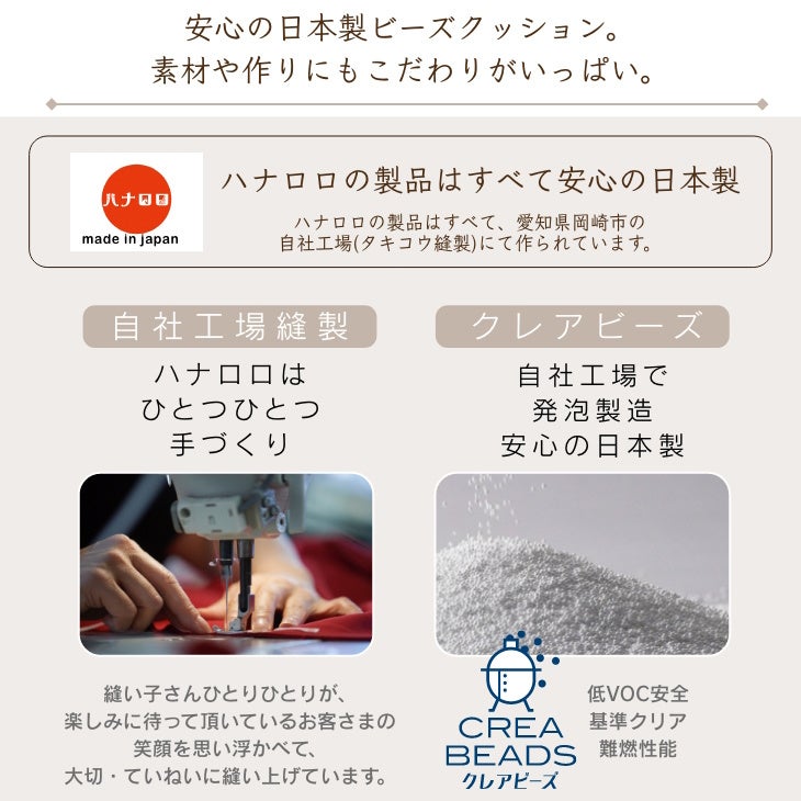 タキコウ縫製が運営するhanalolo(ハナロロ)は、おしゃれな部屋にもなじむビーズクッション