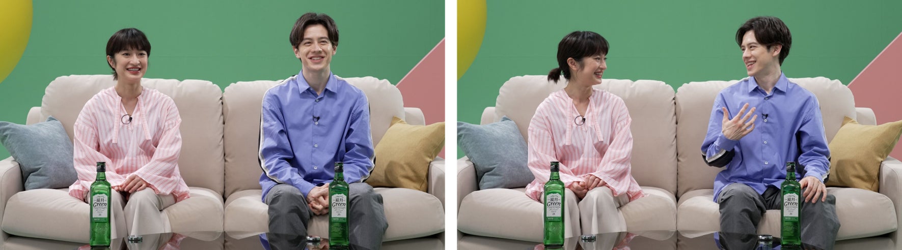 「カメラが回っている中で一番笑った日」門脇麦とウエンツ瑛士が“たのしいお酒がいいお酒”を体現する『鏡月Green』の新ブランドムービーを公開