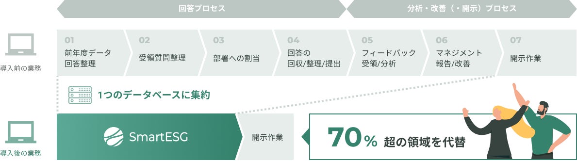 ESG経営という重要な戦略課題を推進するためには、社内に蓄積されたESG情報を正確に把握・分析し、効果的な施策と改善を行うことが求められています。一方、これらの情報は様々な部署に散在しており、様式も不統一であることから、情報収集さえも一筋縄では行かないのが実態です。「SmartESG」は、収集・開示・分析という一連のプロセスを滑らかにすることで、企業によるESG経営の高度化を支える強力な基盤になると期待しています。