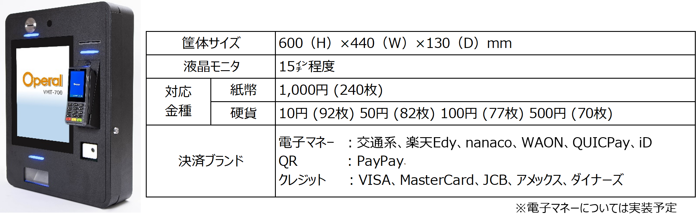 - 【精算機 VMT-700の基本スペック】